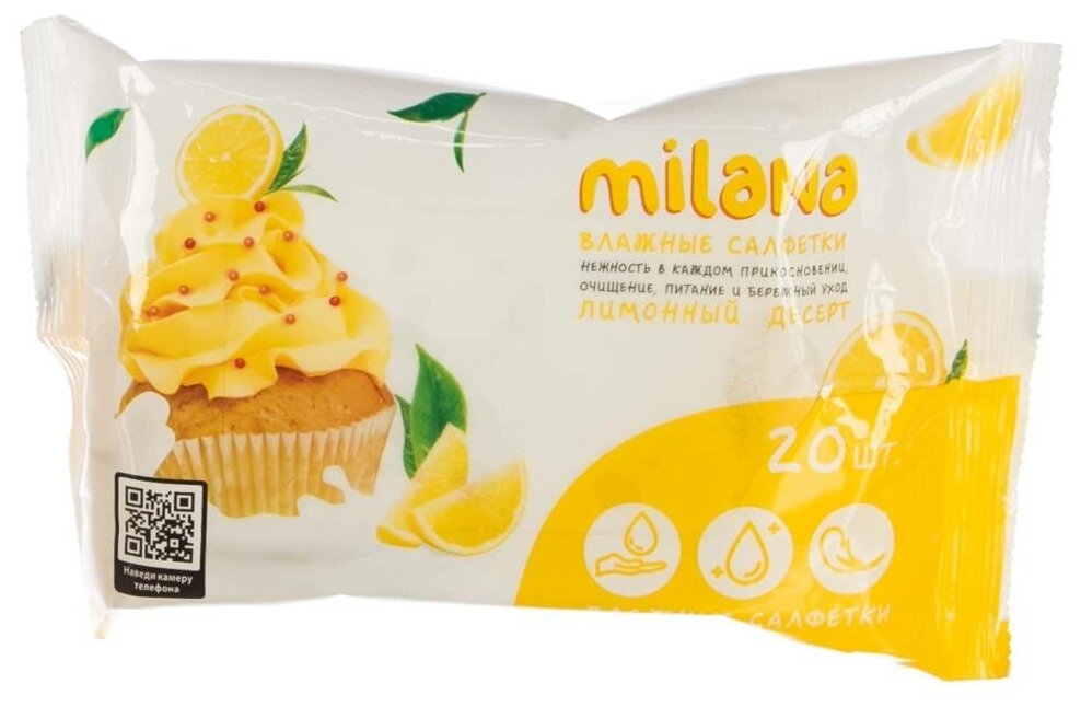 Влажные антибактериальные салфетки Milana Лимонный десерт (20 шт.)