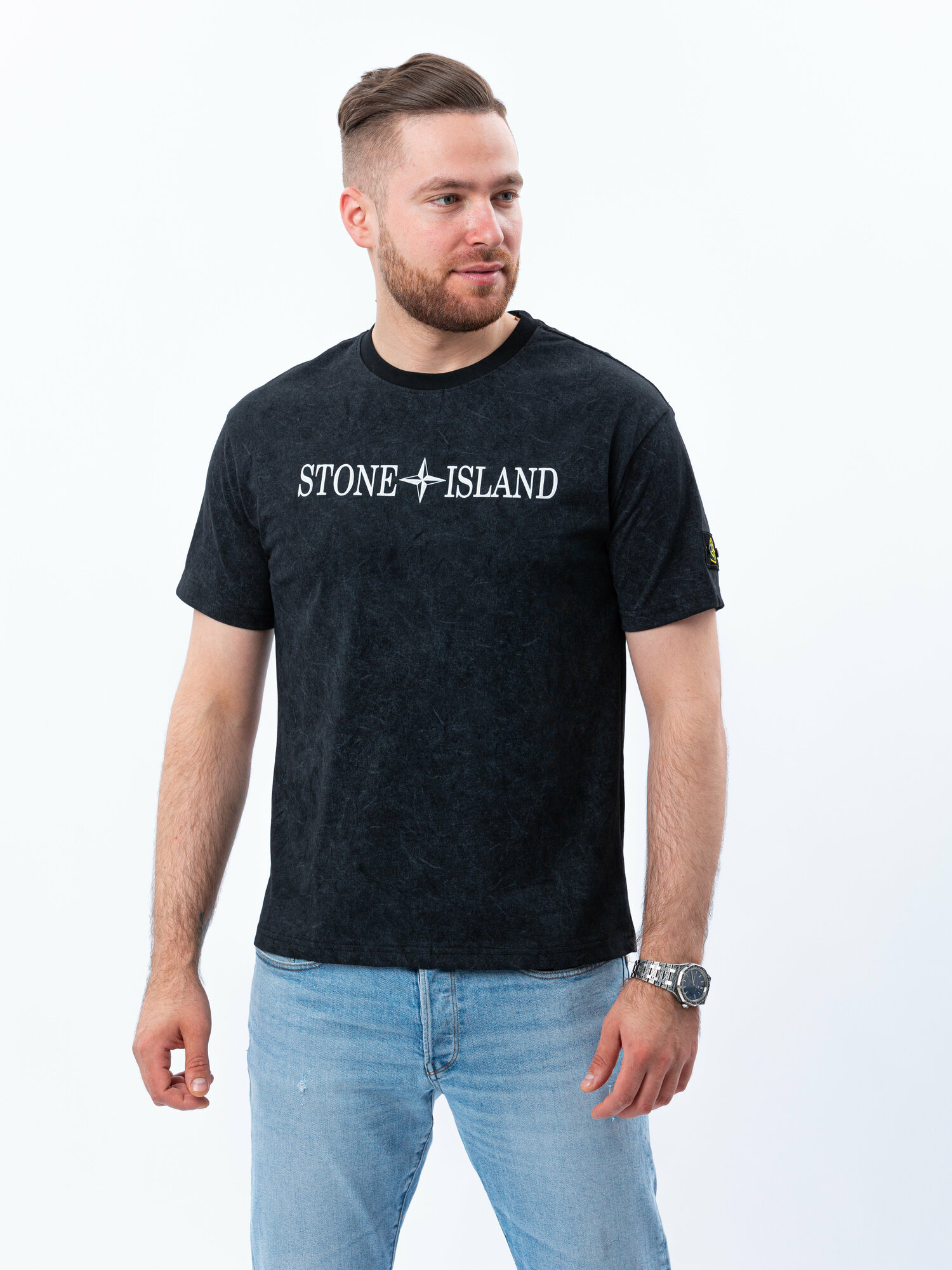 Футболка мужская черная с принтом 746 1 размер XL (50) STONE ISLAND