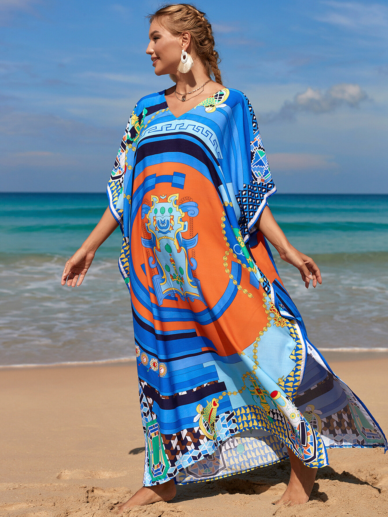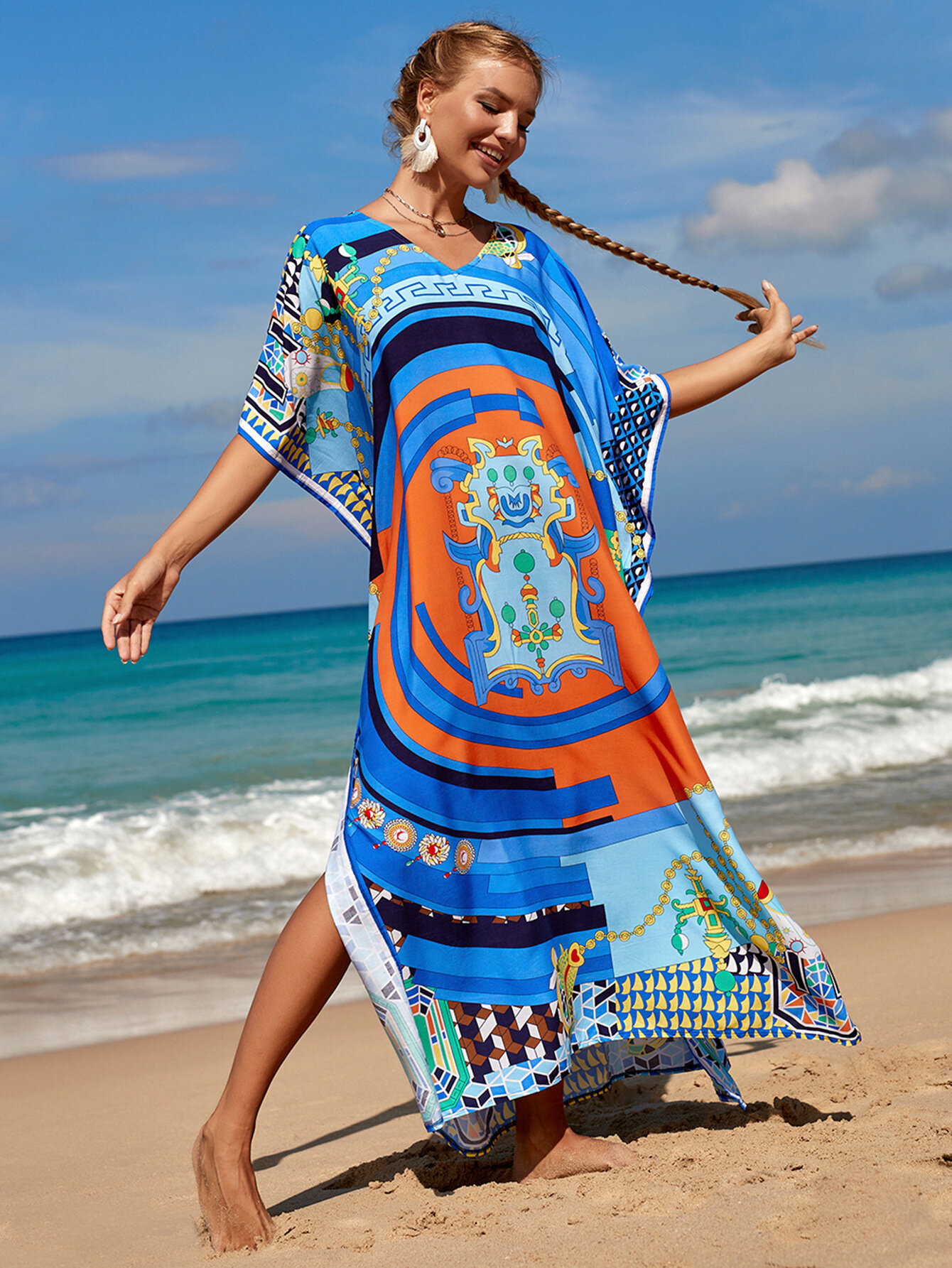 Туника пляжная яркая разноцветная. Разноцветная. Голубая Длинна 140. Размер 44-52