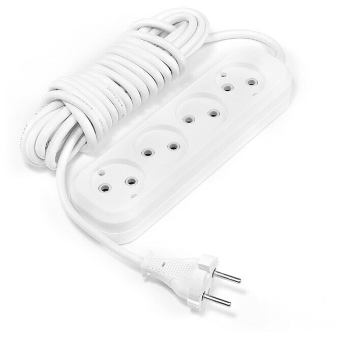 Smartbuy Удлинитель Smartbuy, 4 розетки, 5 м, 10 А, 2200 Вт, ПВС 2х1 мм2, без з/к, белый