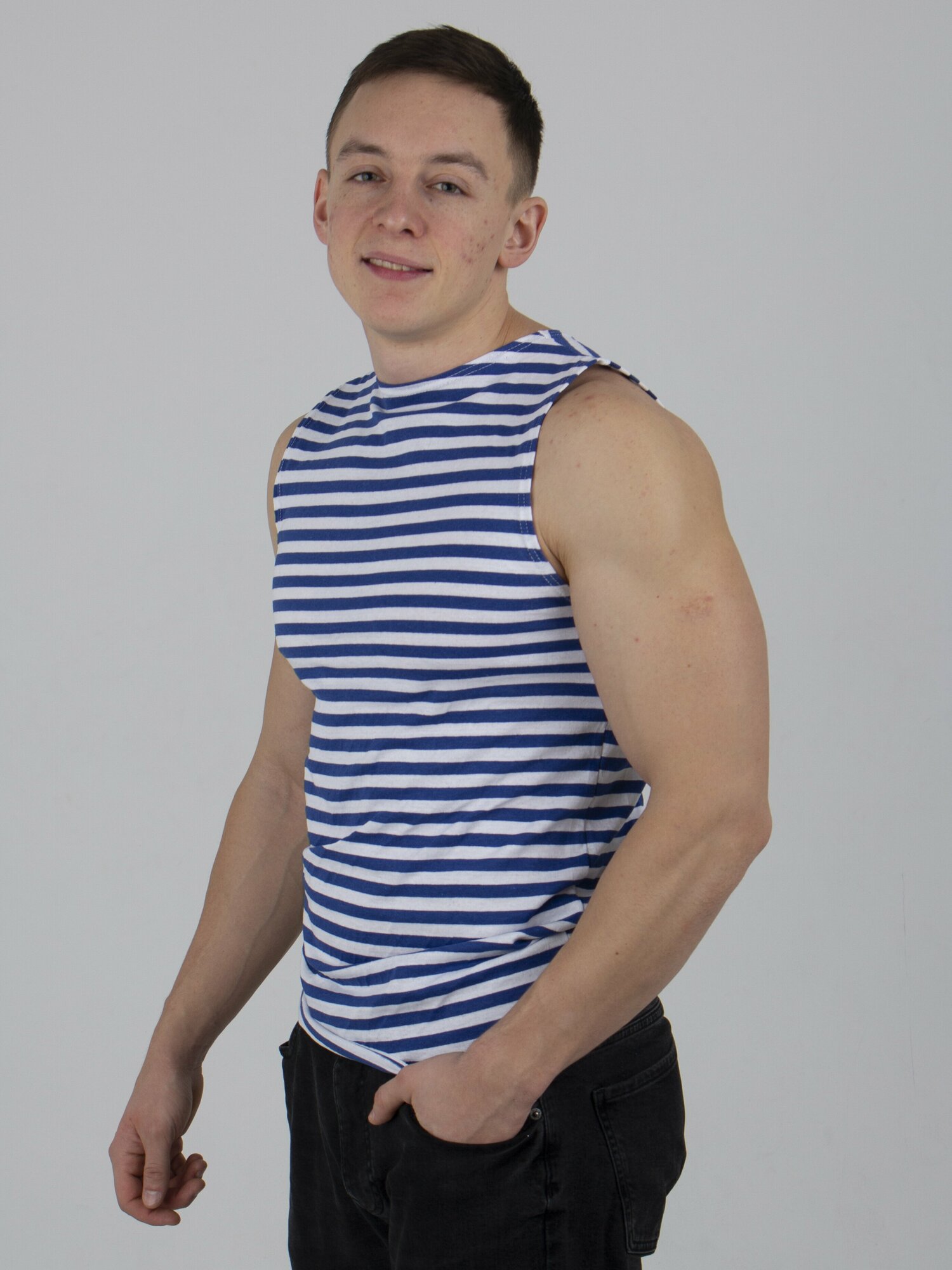 Майка Традиция тельняшка афганка, размер 46-48/182, голубой