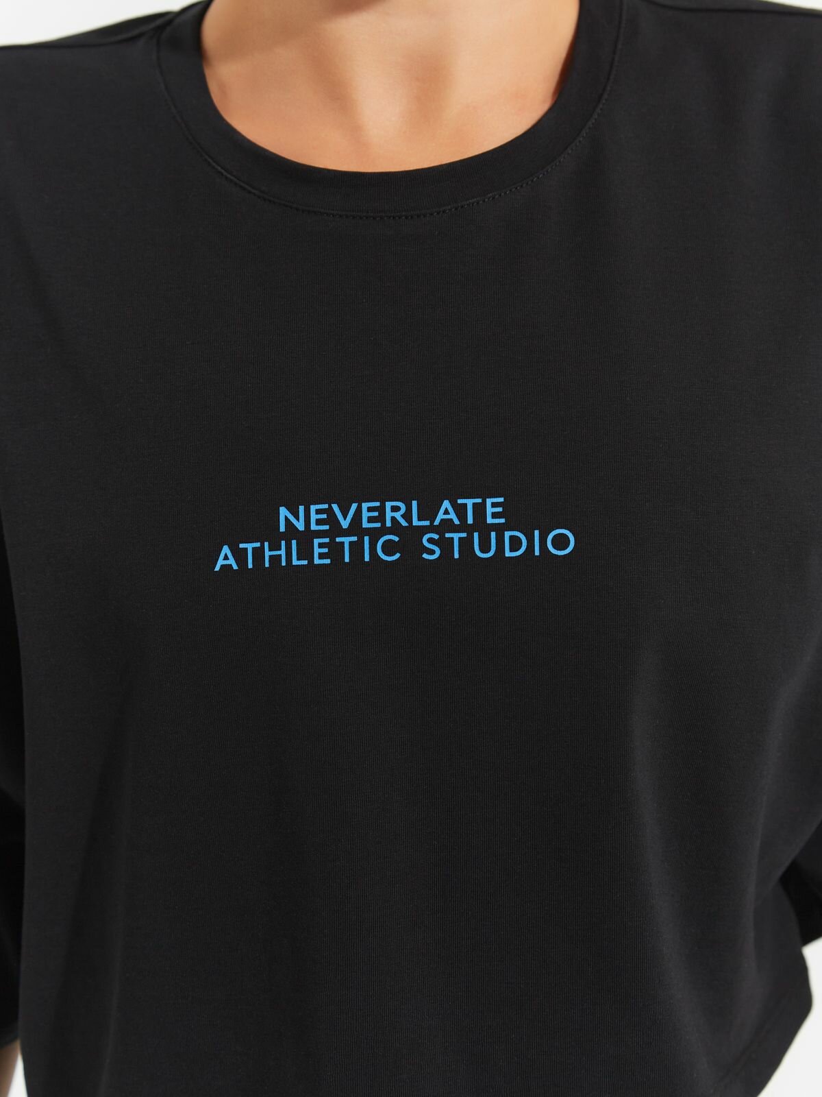 Футболка NEVERLATE из хлопка укороченная оверсайз черная женская 1 790 ₽