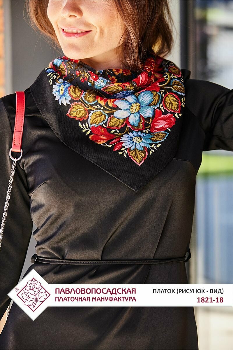 Платок Павловопосадская платочная мануфактура для женщин,72х72 см, черный информация: