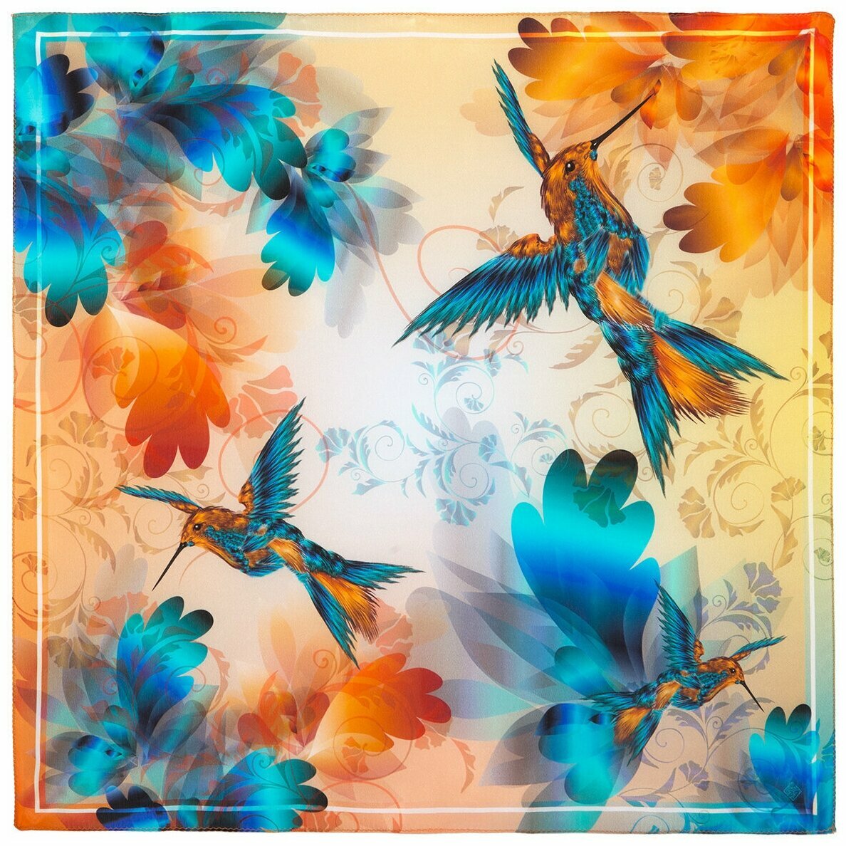 Платок VENERA для женщин,90х90 см, фиолетовый, белый, оранжевый, розовый, зеленый