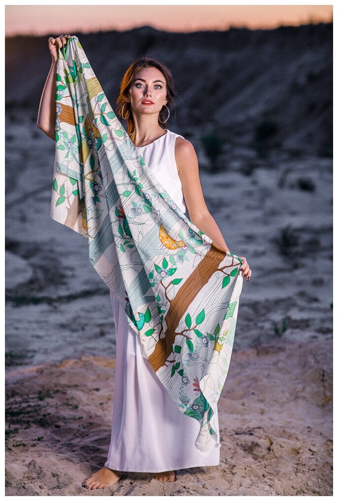 Отзывы на Палантин Павловопосадская платочная мануфактура для женщин,200х65 см, зелeный