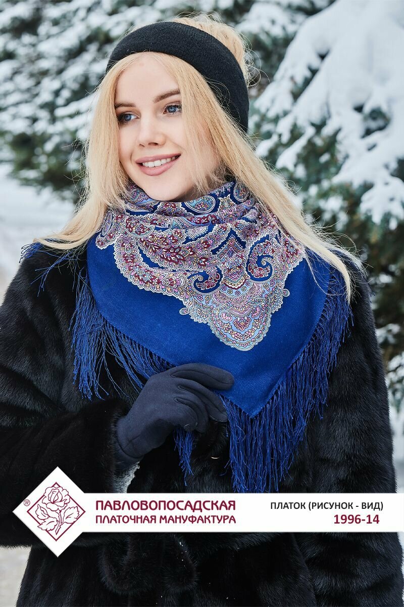 Отзывы на Платок Павловопосадская платочная мануфактура для женщин,89х89 см, синий