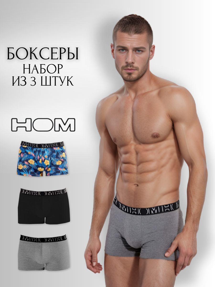 10 цен на Трусы HOM, комплект из 3 шт., размер M, черный/серый/синий
