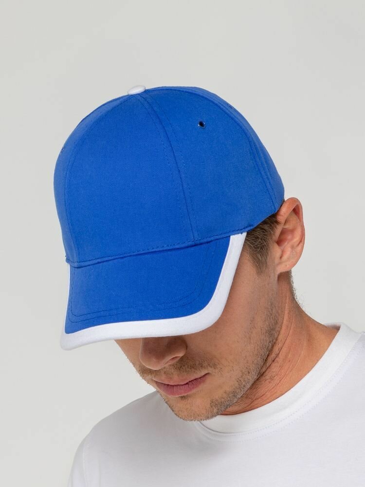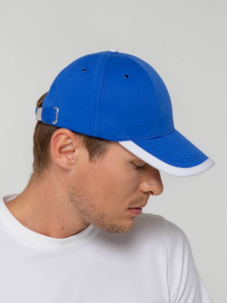 Бейсболка мужская женская летняя Honor, ярко-синяя с белым кантом