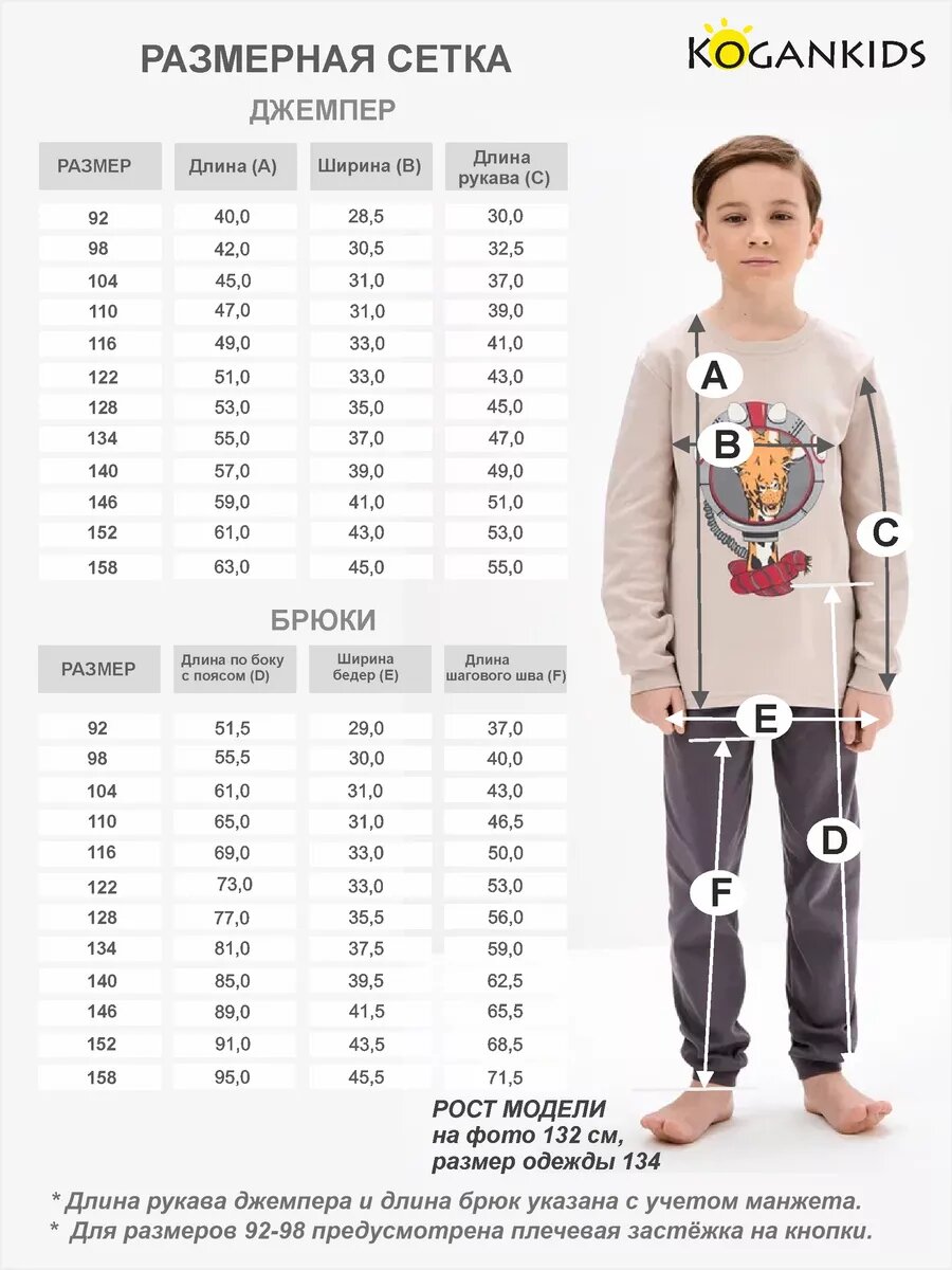 Пижама Kogankids, размер 146 / 11 лет, серый информация: