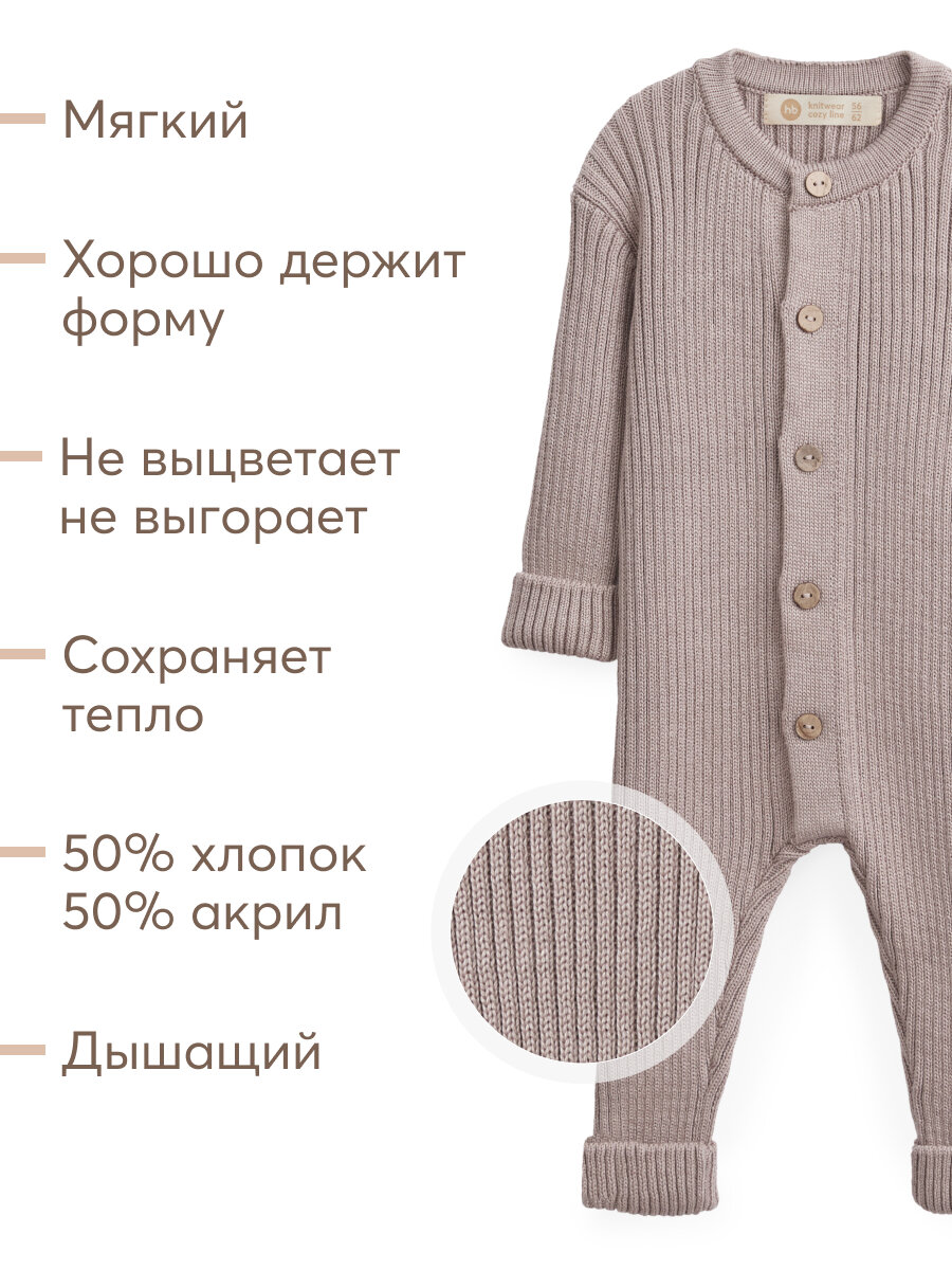 88518, Комбинезон для новорожденных Happy Baby, вязаный, под подгузник, верхний слой, бежевый, размер 68-74 2 451 ₽