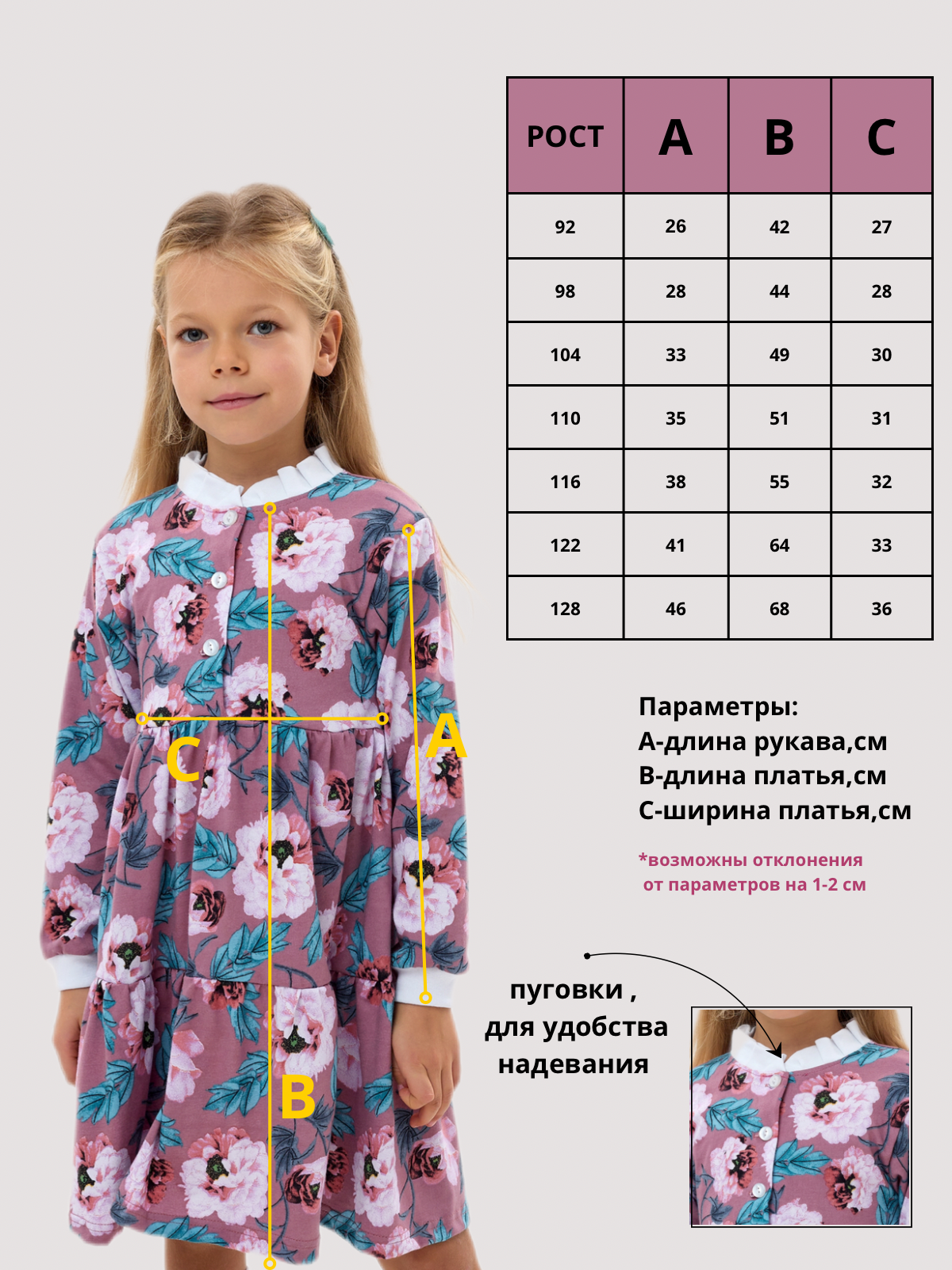 Легкое платье с длинным рукавом, розовый пион, размер 122 626 ₽