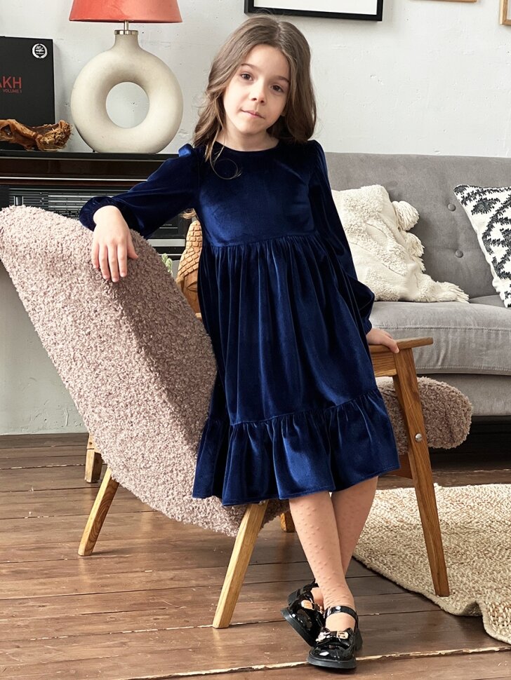 Платье Бушон, размер 140-146, темно-синий информация: