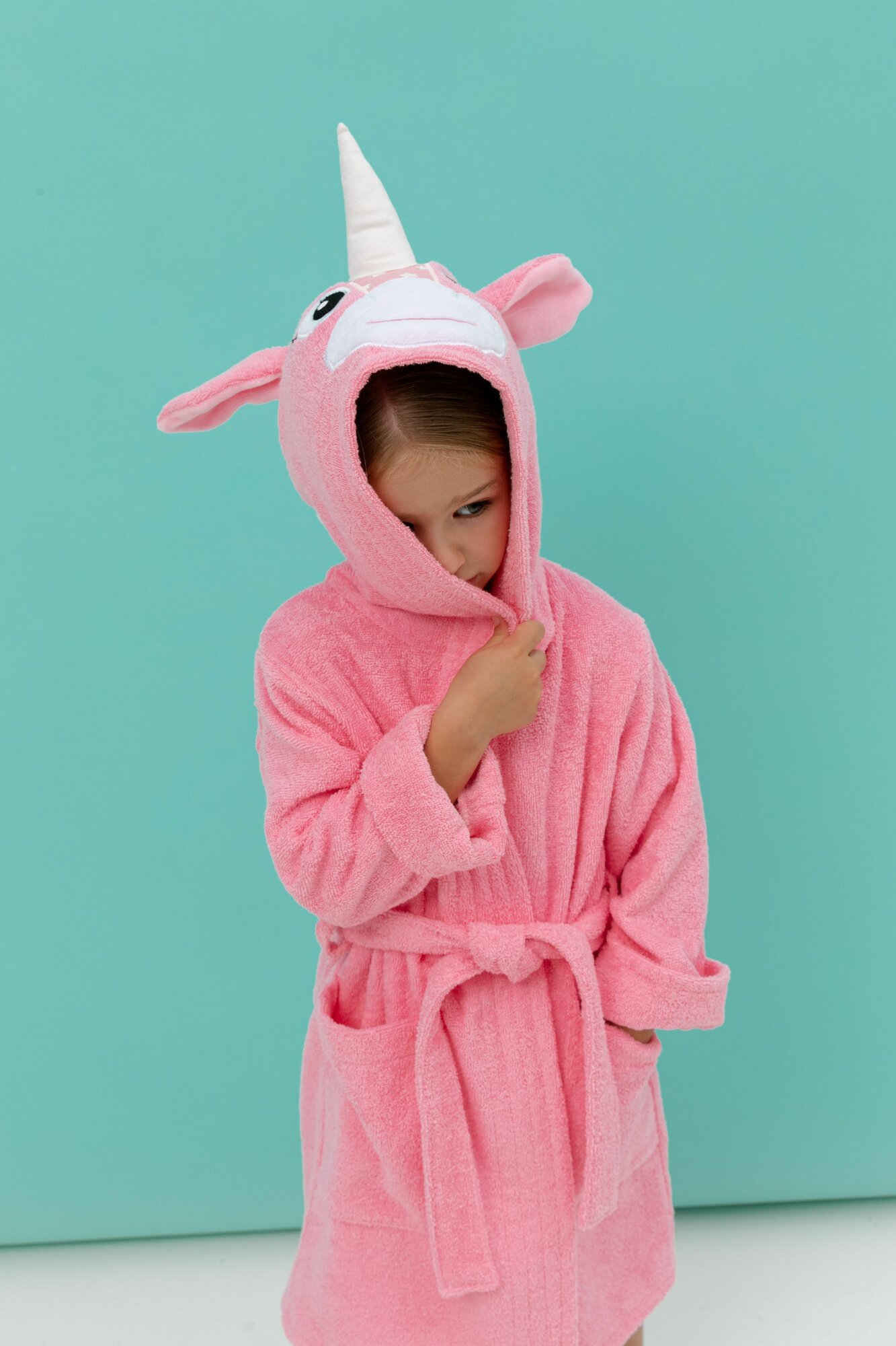 Халат махровый с капюшоном Fluffy Bunny Единорог, цвет Светло-розовый, р.104 2 700 ₽