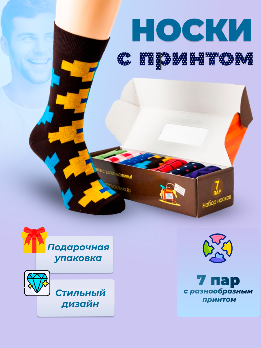 носки дизайнерские, набор из 7 пар godovoyzapas, ассорти №1, размер 41-43 1 490 ₽