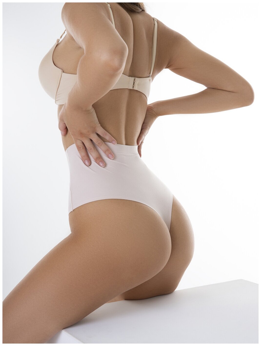 Трусы бесшовные хлопковые стринги с высокой посадкой