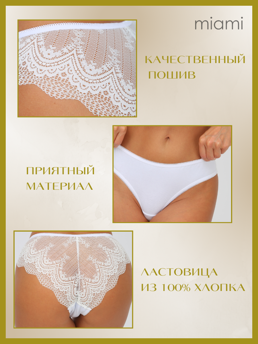 Трусы женские слипы, размер 42, средняя посадка, хлопок, кружево, Miami, белый 480 ₽