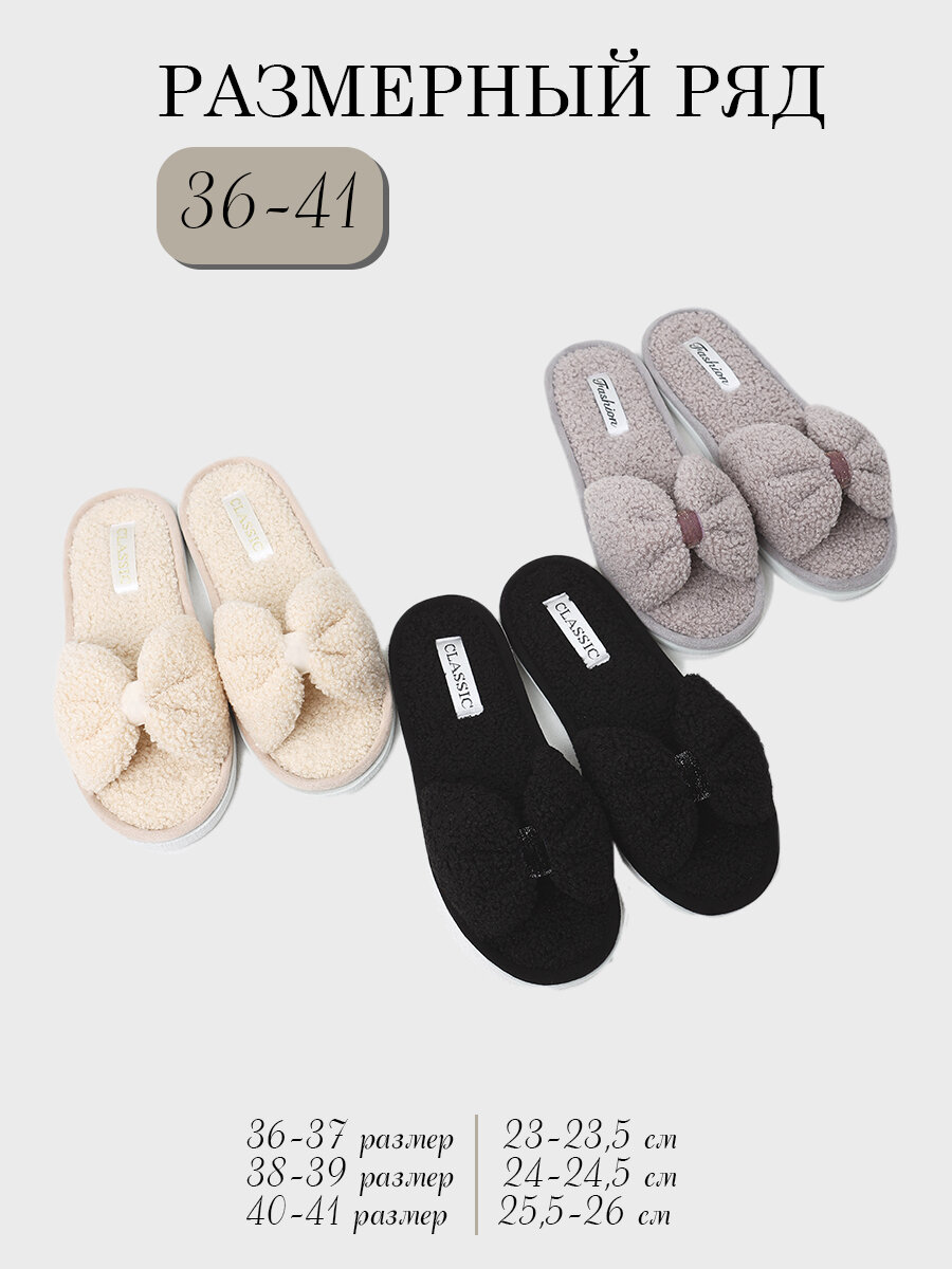 Тапочки ALBERY тапочки женские/тапочки для дома/тапочки с бантом/домашние тапочки/мягкие женские тапочки/комнатные тапочки/домашняя обувь, размер 36-37, бежевый информация: