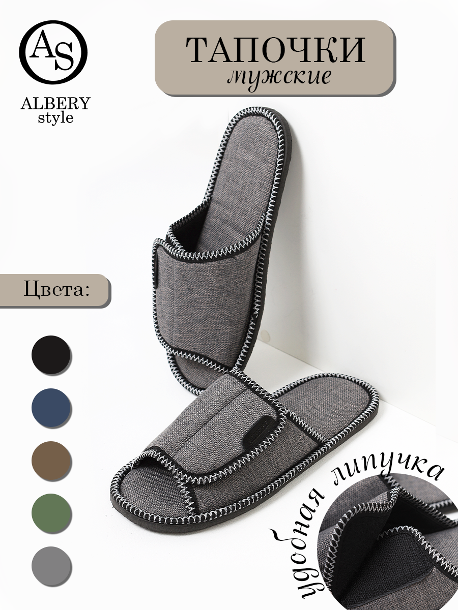 Отзывы на Тапочки ALBERY Тапочки мужские на липучке ALBERY, размер 40-41, серый