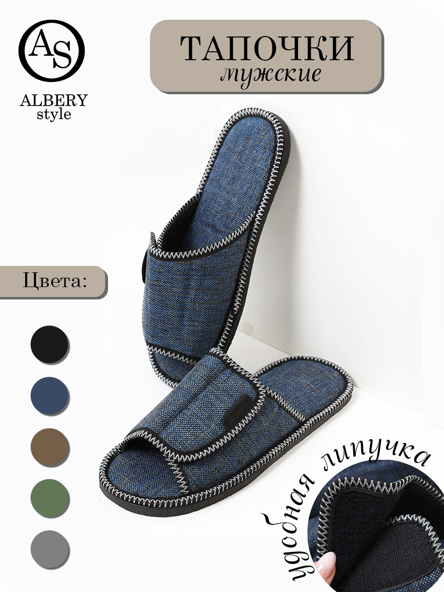 Тапочки ALBERY тапочки/тапочки домашние/тапочки домашние мужские/тапочки мужские/тапочки для мужчин/тапочки для мужчин домашние/мужские тапочки/тапочки домашние для мужчин/ мужские тапочки/ подарки мужчинам, размер 40-41, синий информация: