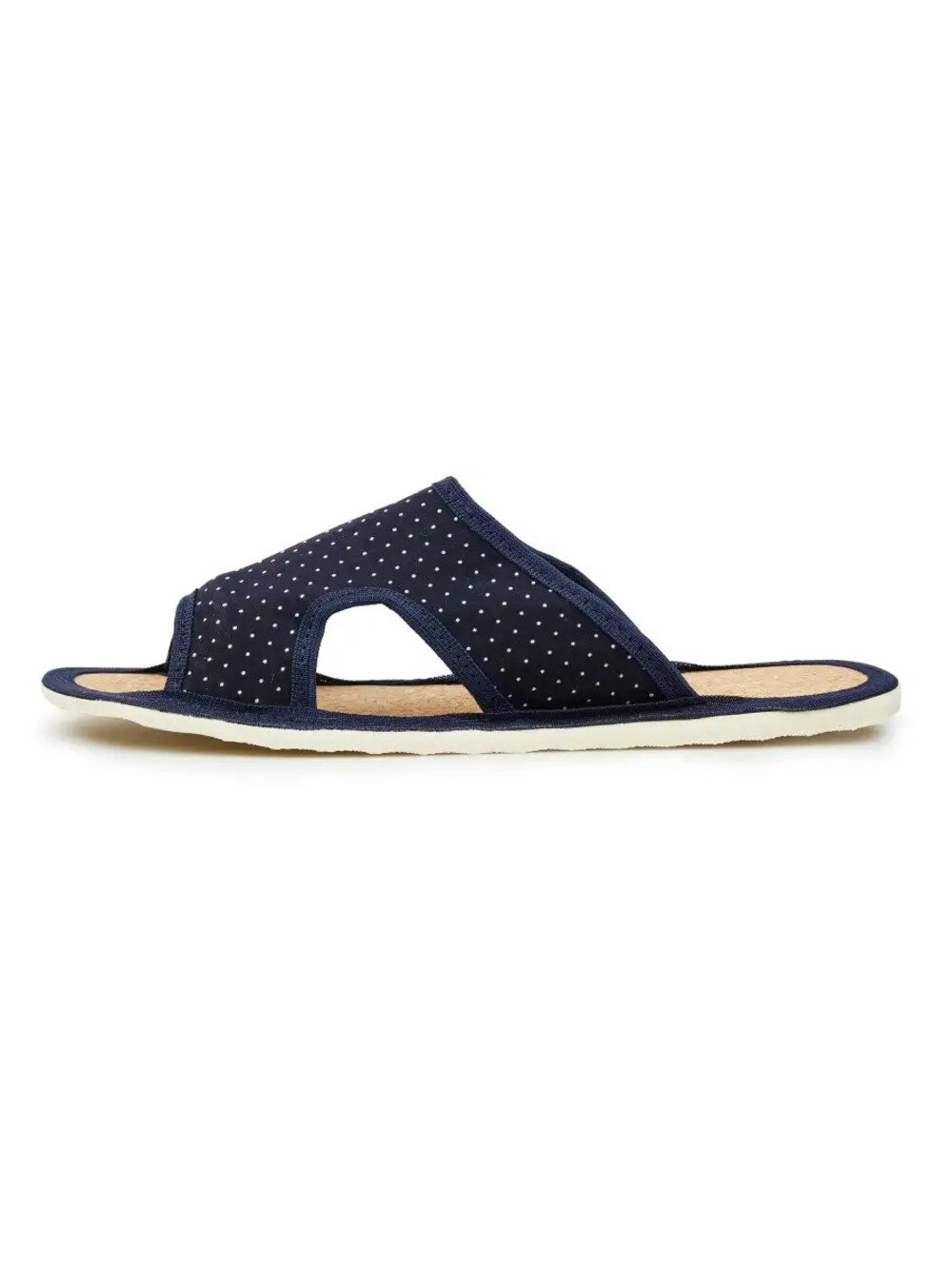 Женские домашние тапочки "LepiloV", открытые, на пробковой стельке. Размер 42. Синий горох, цветок. 500 ₽