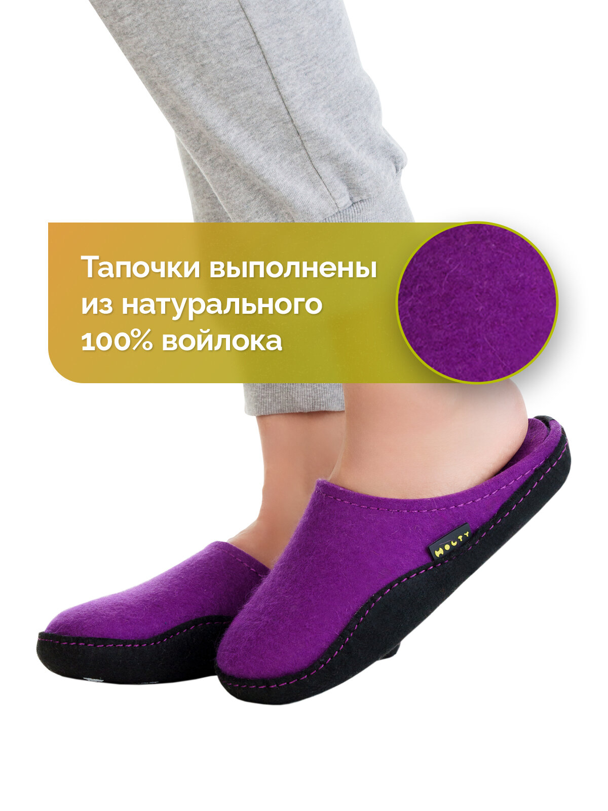 Тапочки войлочные Холти "Дудинка" теплые домашние женские тапки из натурального войлока (р. 37), фиолетовый 3 059 ₽