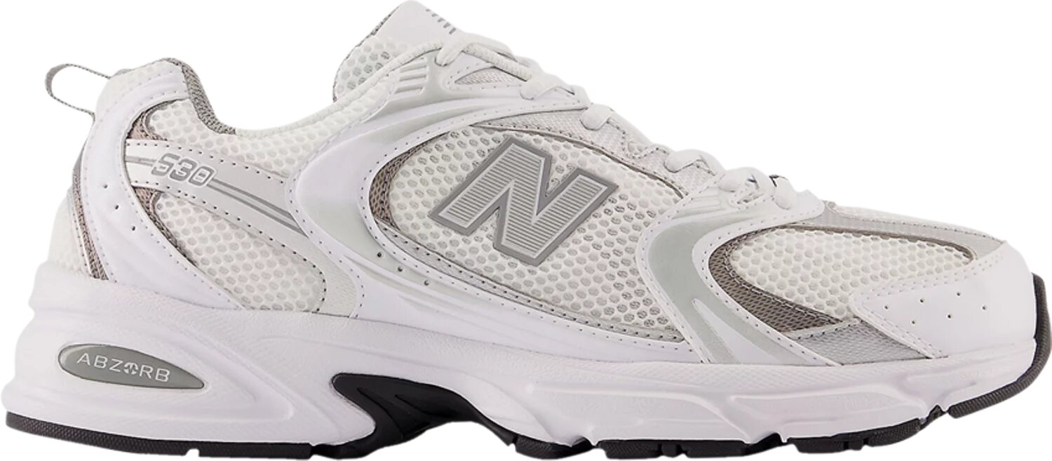 Кроссовки New Balance "530" - белые с серебряными вставками 44.5 eu