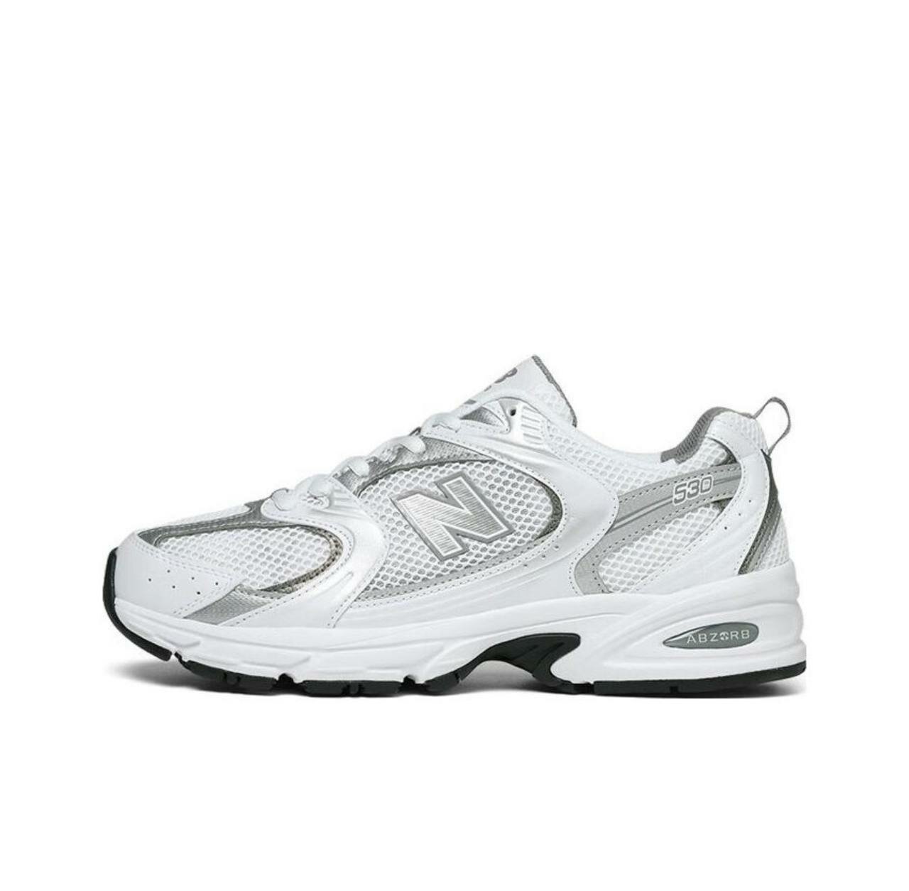 Кроссовки New Balance "530" - белые с серебряными вставками 44.5 eu