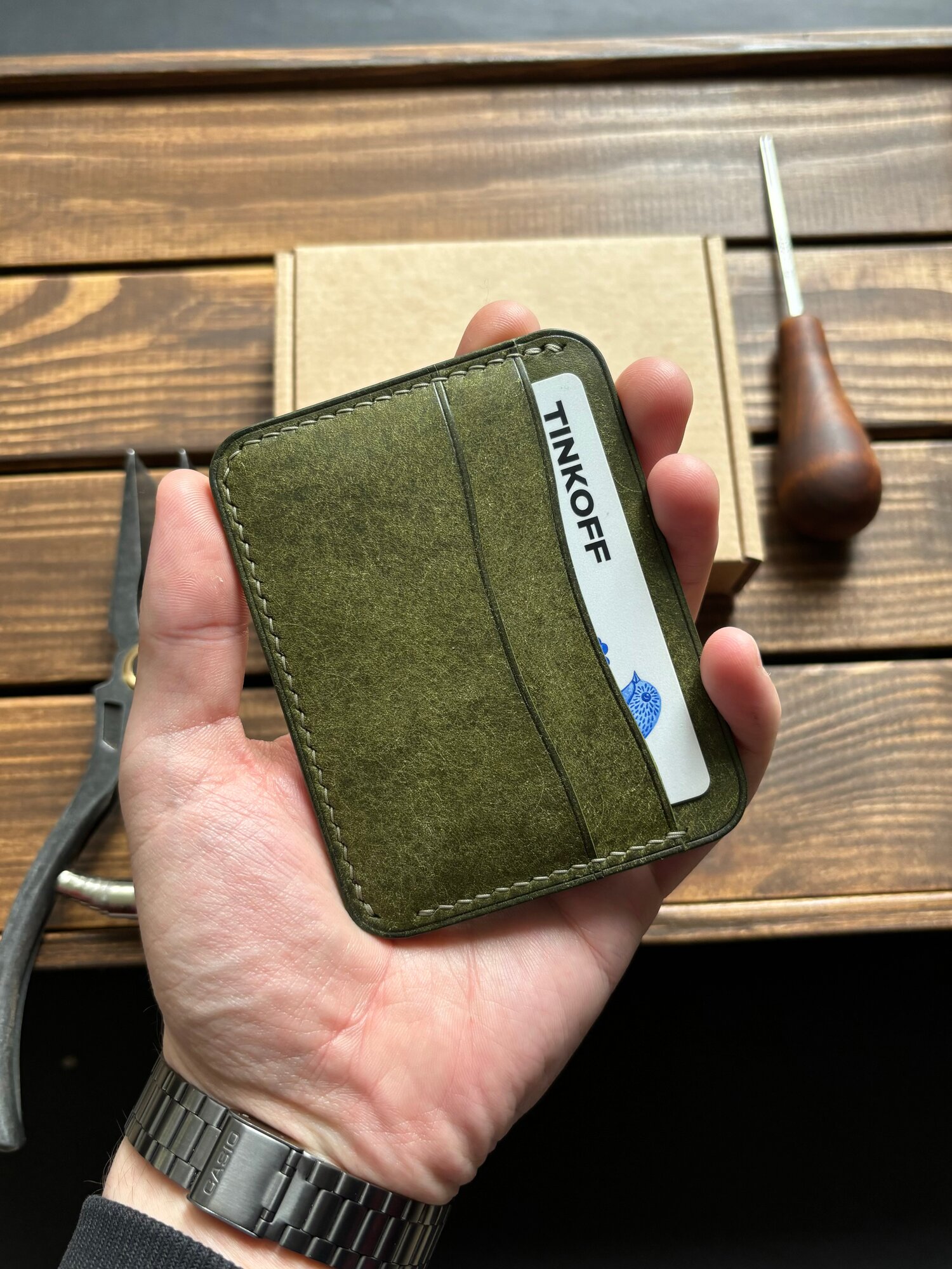 Картхолдер из натуральной кожи ручной работы Pueblo Olive / Кожаный мини кошелек для мужчин и женщин. Цвет оливковый 3 992 ₽