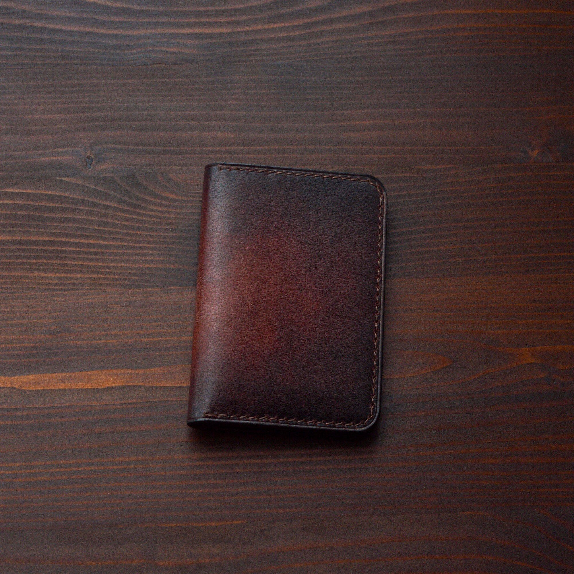 Картхолдер из натуральной кожи ручной работы Bourbon / Кожаный мини кошелек, цвет бордовый 4 100 ₽