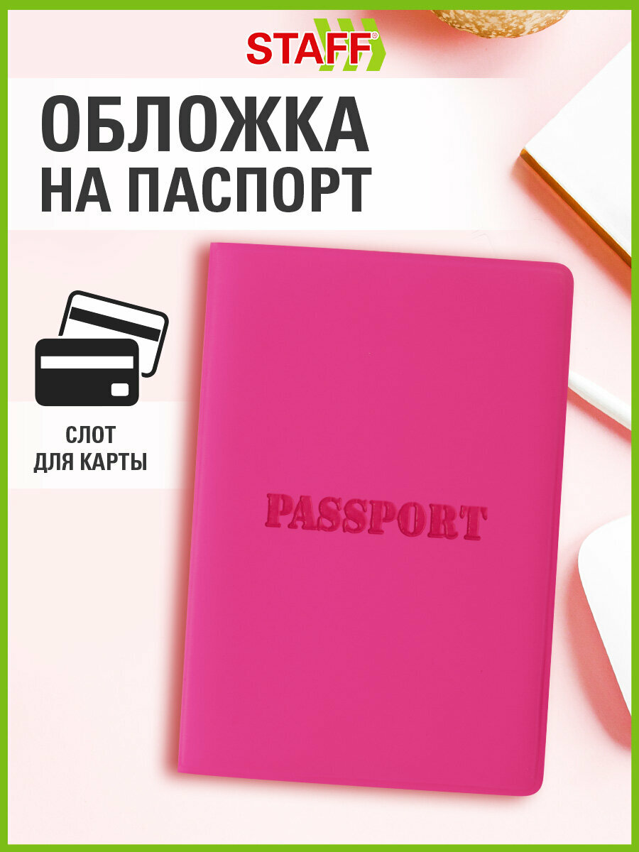Обложка (чехол) на паспорт / для документов Staff, мягкий полиуретан, Паспорт, розовая, 237605