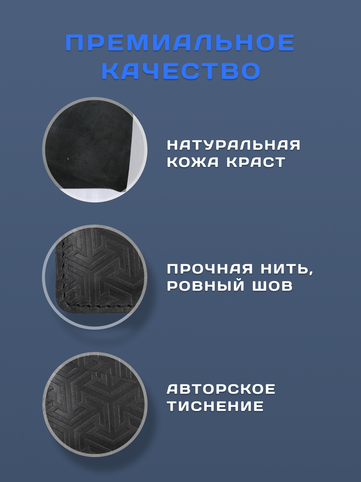 Кожаный картхолдер для автодокументов и карт, черный с рисунком 1 555 ₽