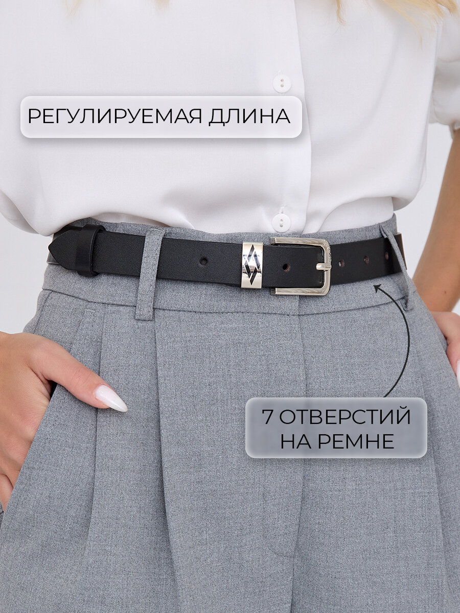Ремень LEO HARDY для женщин, размер 75, черный, серебряный 1 102 ₽