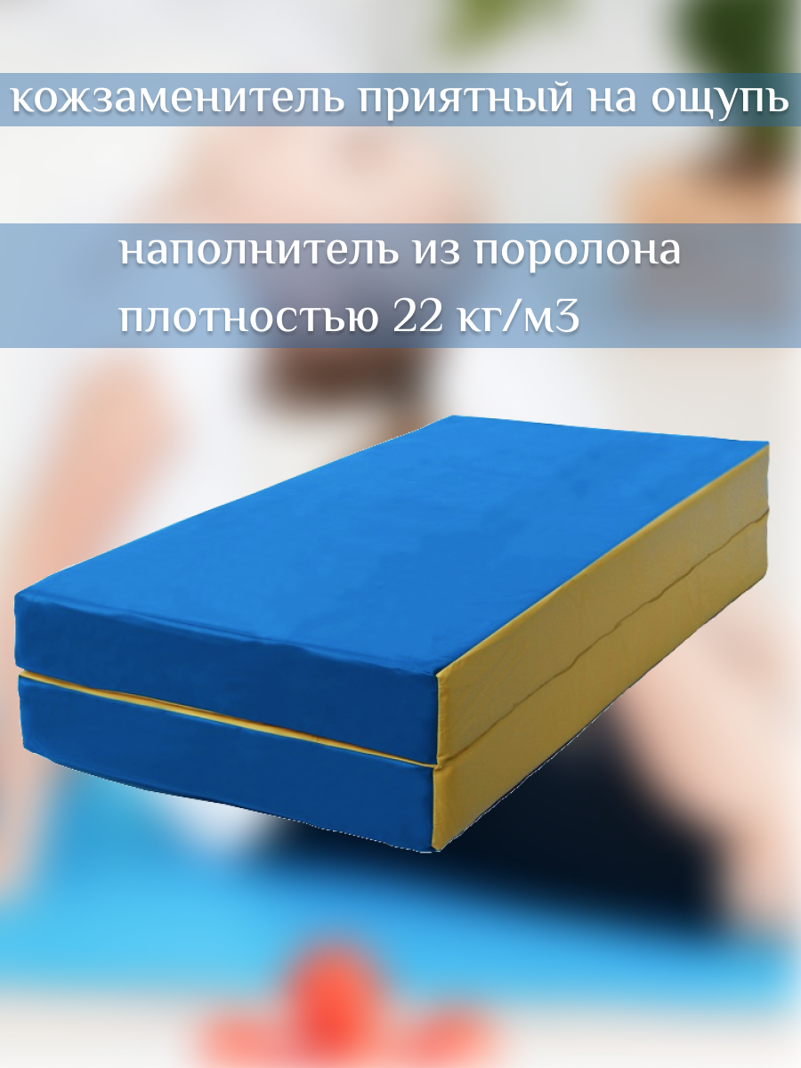 Мат гимнастический КМС 3 (100 х 100 х 10) складной сине/жёлтый .