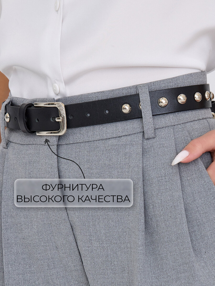 Ремень LEO HARDY для женщин, размер 75, черный, серебряный 1 102 ₽