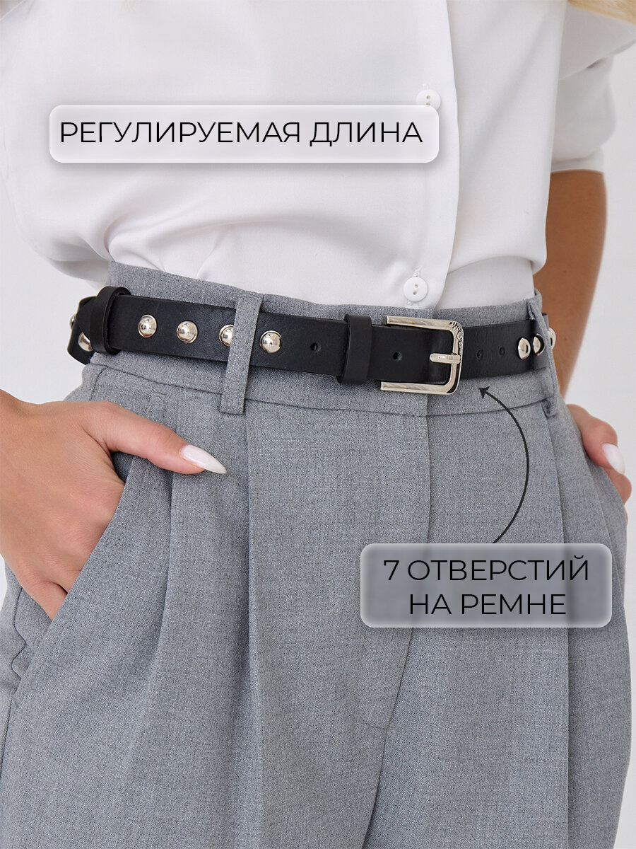 Ремень LEO HARDY для женщин, размер 75, черный, серебряный 1 102 ₽