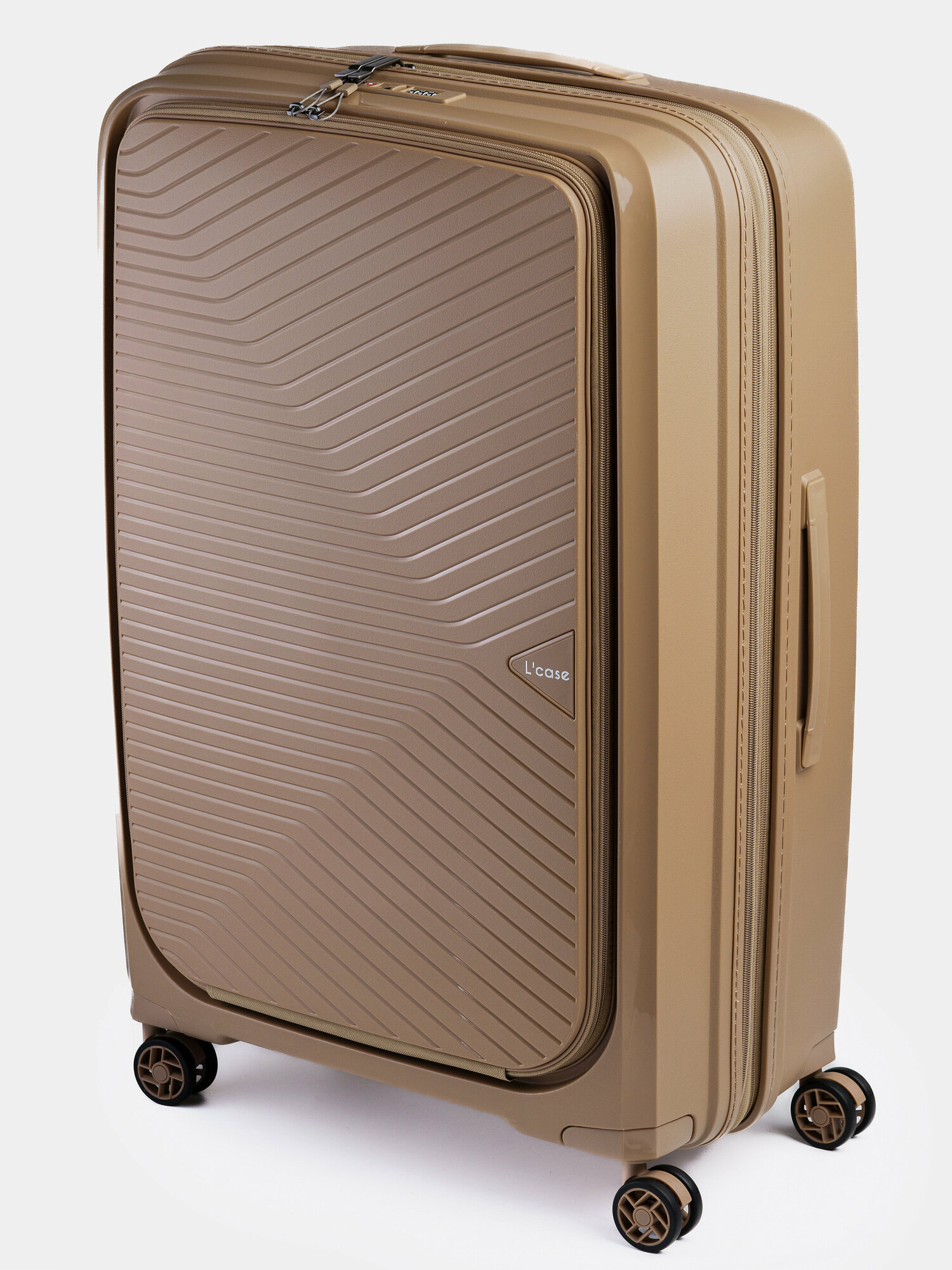 Чемодан на колесах L большой, коричневый - Чемодан полипропилен, семейный Lcase
