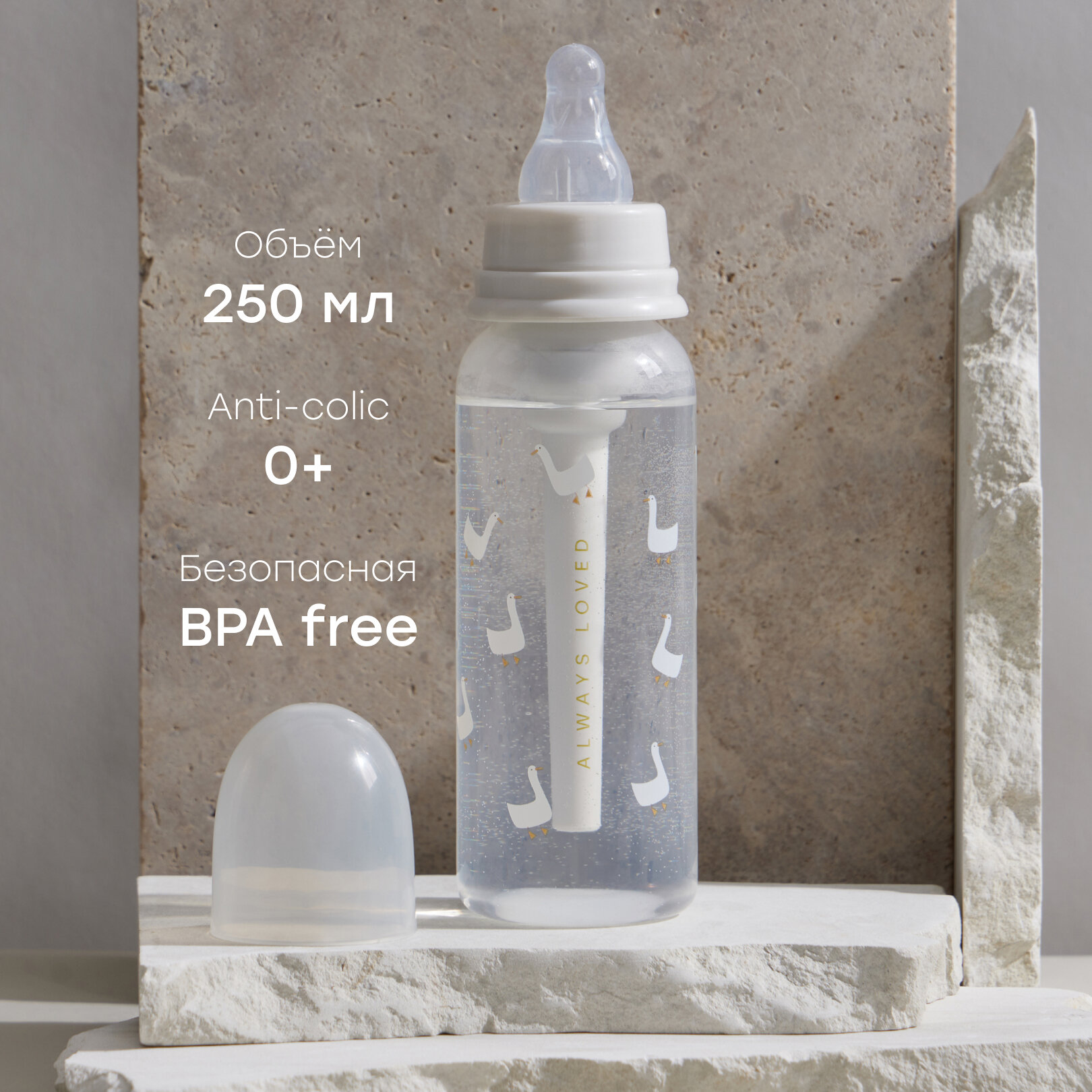 10015, Бутылочка для кормления от 0 месяцев Happy Baby, для новорожденных, 250 мл, серая с гусями информация: