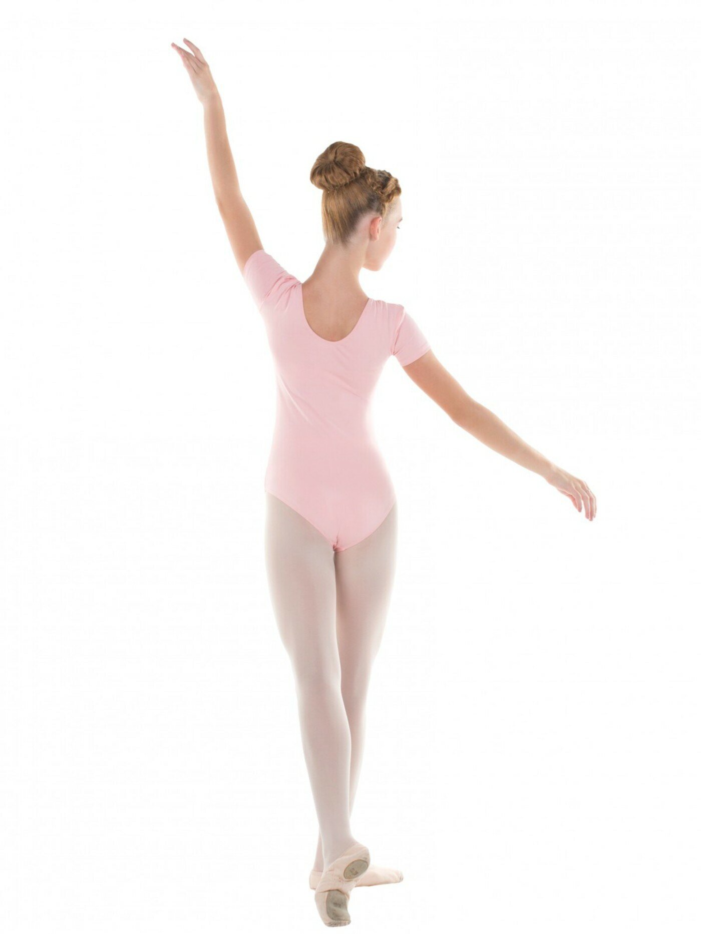 Купальник гимнастический с коротким рукавом из хлопка для танцев и балета SOLO FD926-108 (ХБ) (розовый, 34) Рост 134-140
