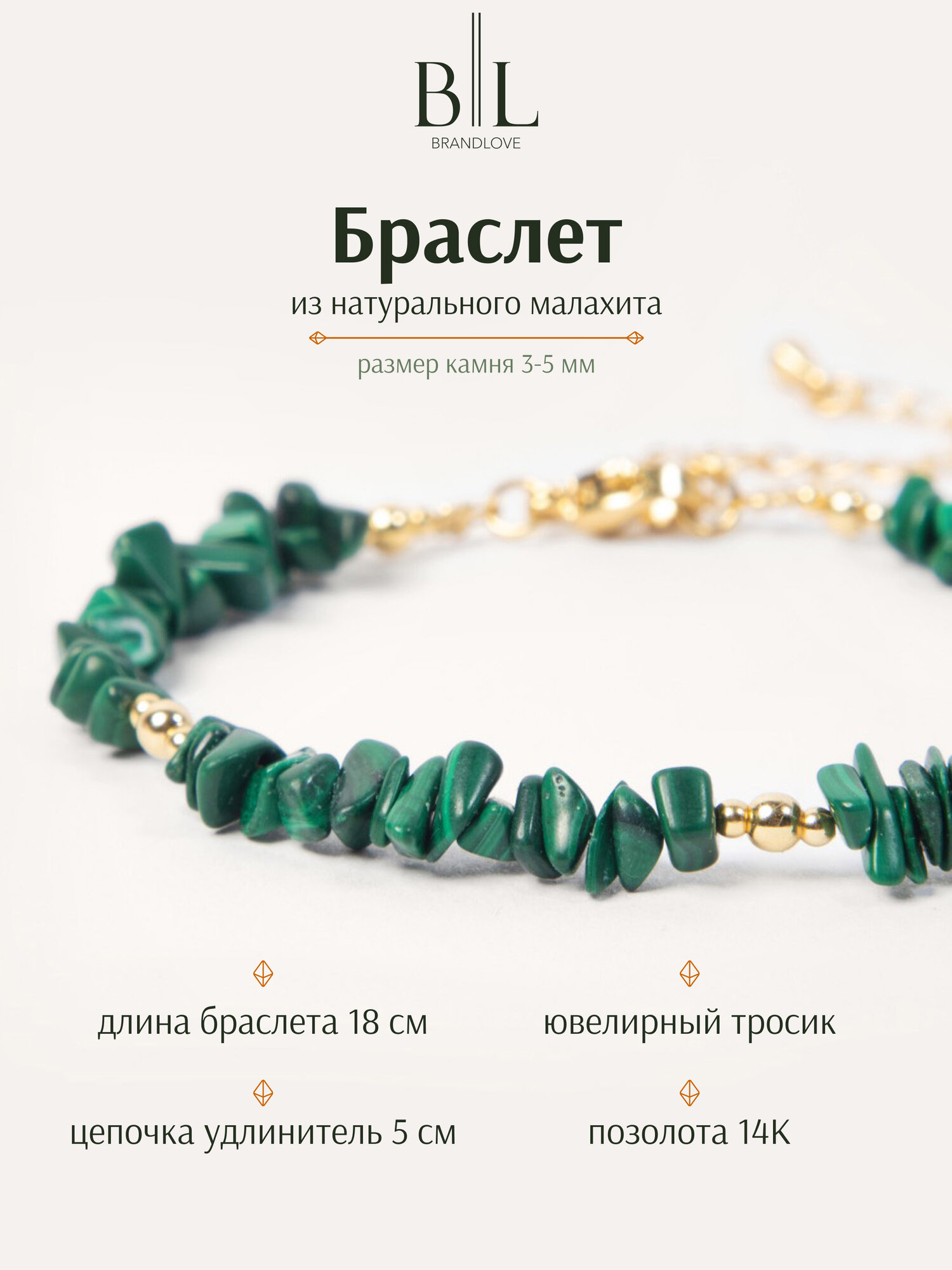 Браслет женский из натуральных камней на руку Dolcezza с малахитом и позолотой 14К, размер 18-23, бижутерия в фирменной упаковке - подарок для женщин 849 ₽