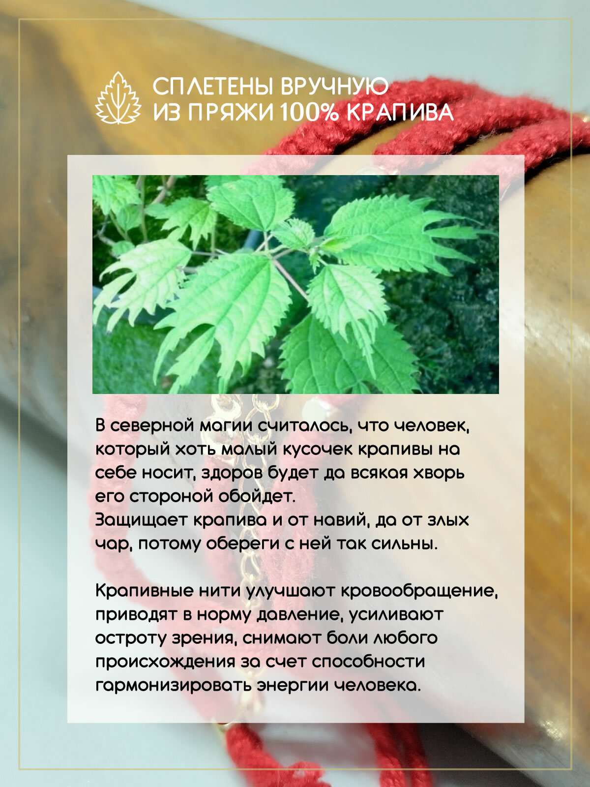 Красная нить на руку 100% Крапива. Браслет на запястье 17-18 см. Позолота, карабин + цепочка 5 см. Оберег на здоровье и удачу. 850 ₽