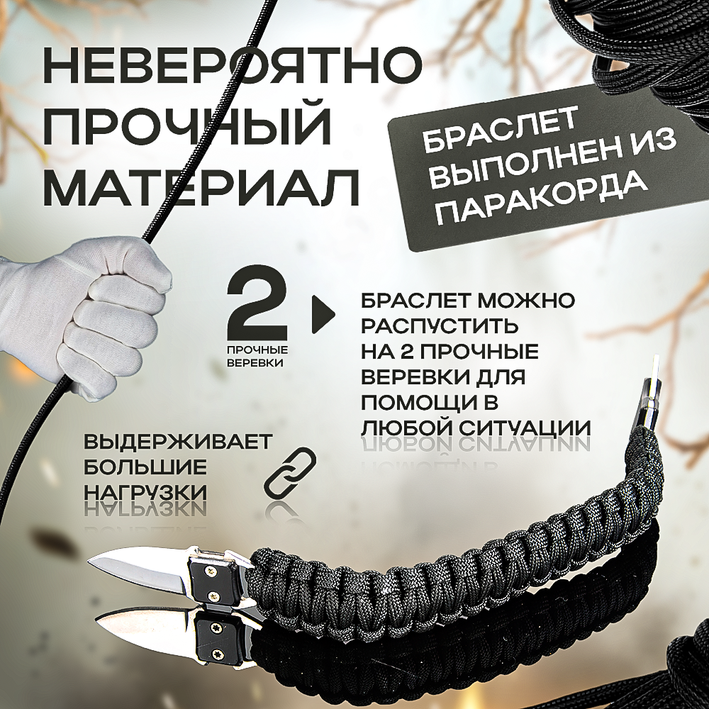 Браслет на запястье из паракорда для выживальщика, с ножом, тактический, камуфляжный цвет 666 ₽