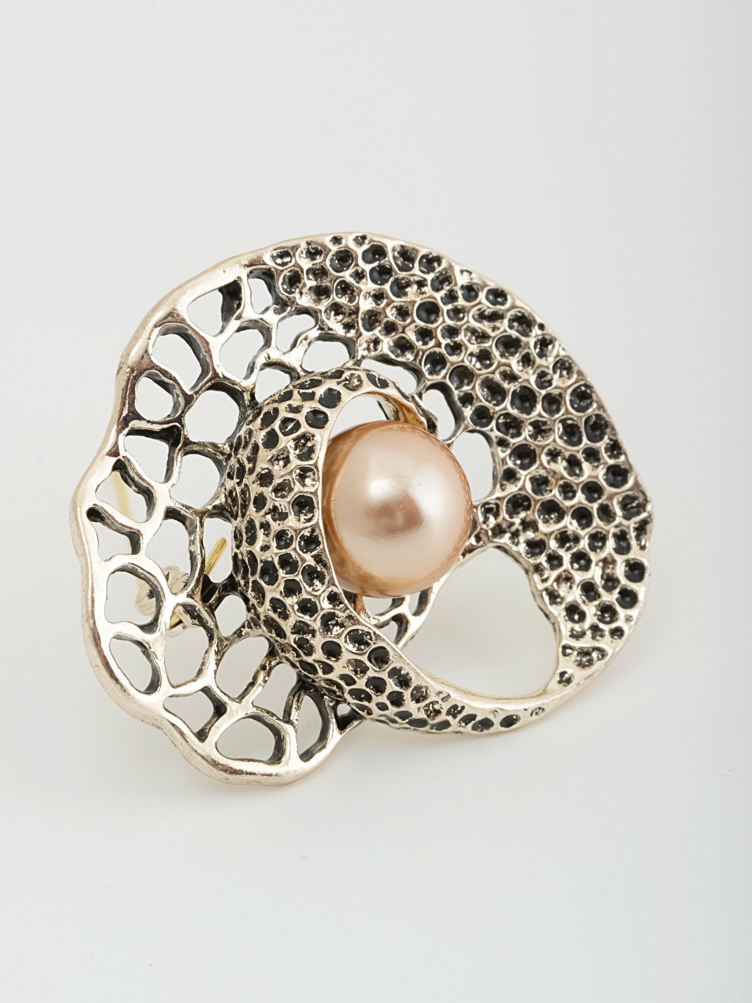 Брошь ЖемАрт, жемчуг имитация, пыльная роза информация: