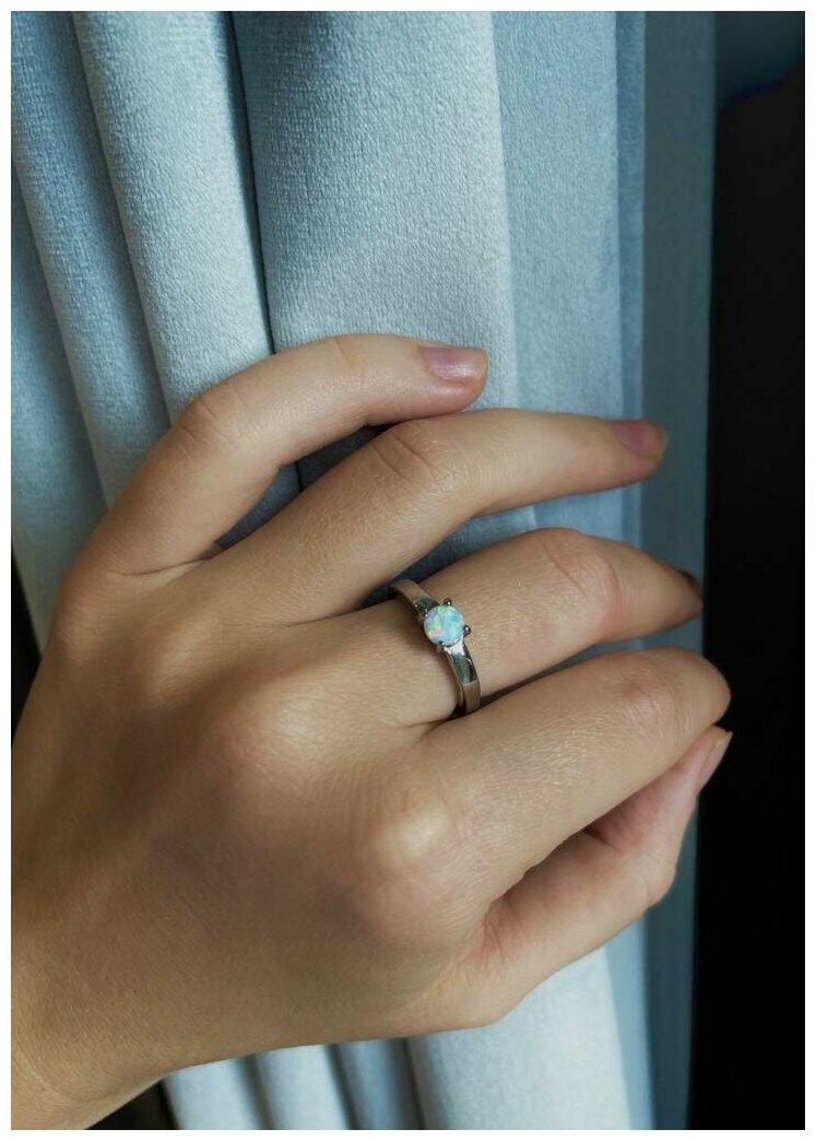 Кольцо помолвочное Spikes, опал синтетический, размер 17.3, ширина 3 мм, серебристый