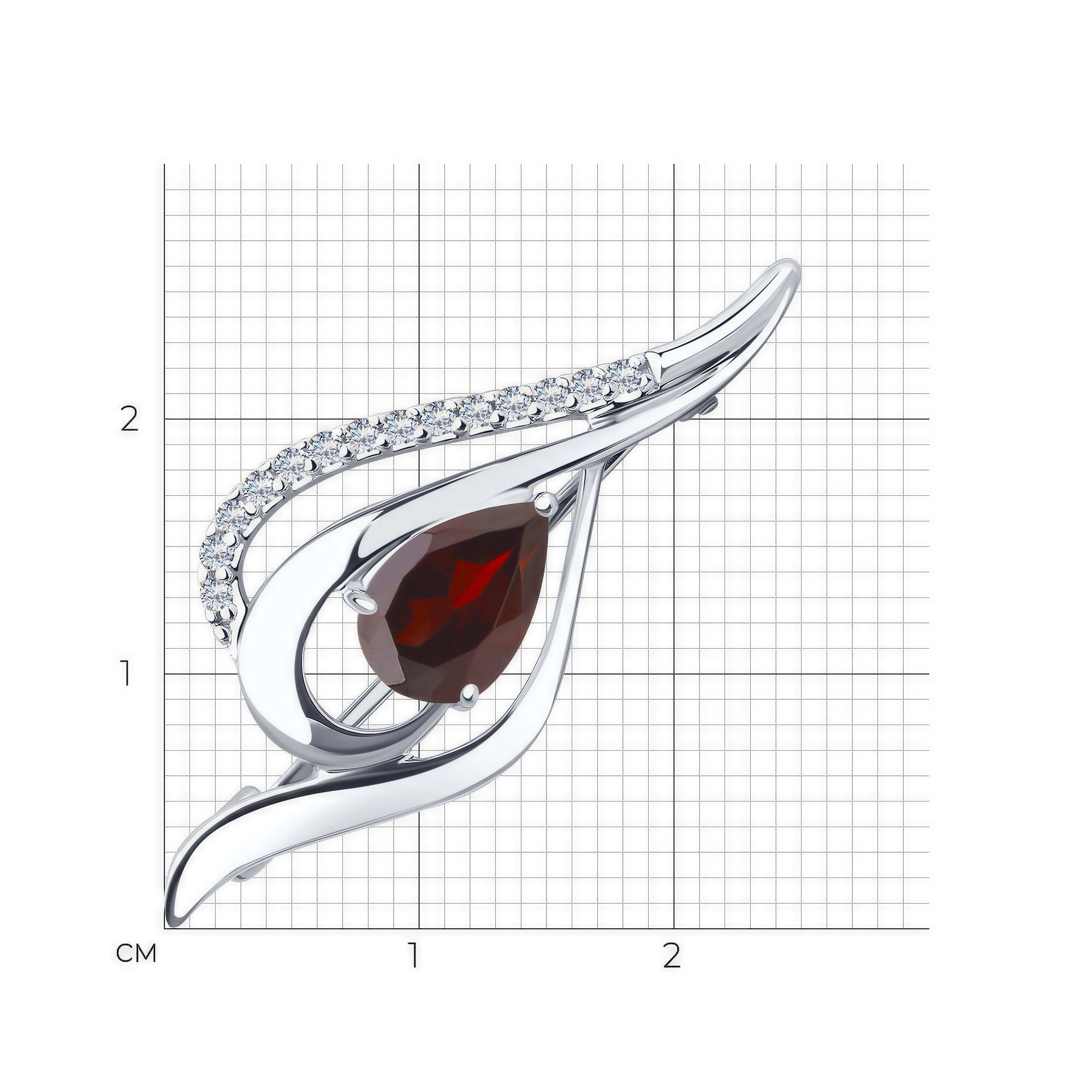 Брошь Diamant online, серебро, 925 проба, родирование, гранат, фианит, размер 3.4 см., , красный информация: