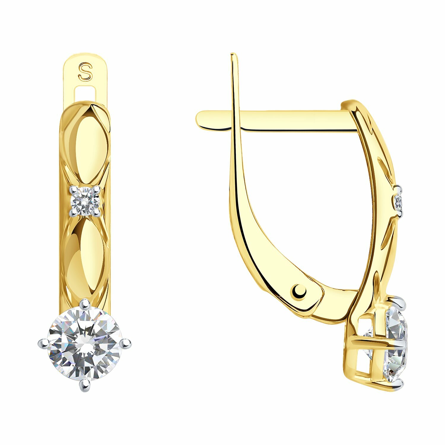 Серьги SOKOLOV, желтое золото, 585 проба, фианит, длина 1.5 см, , бесцветный информация: