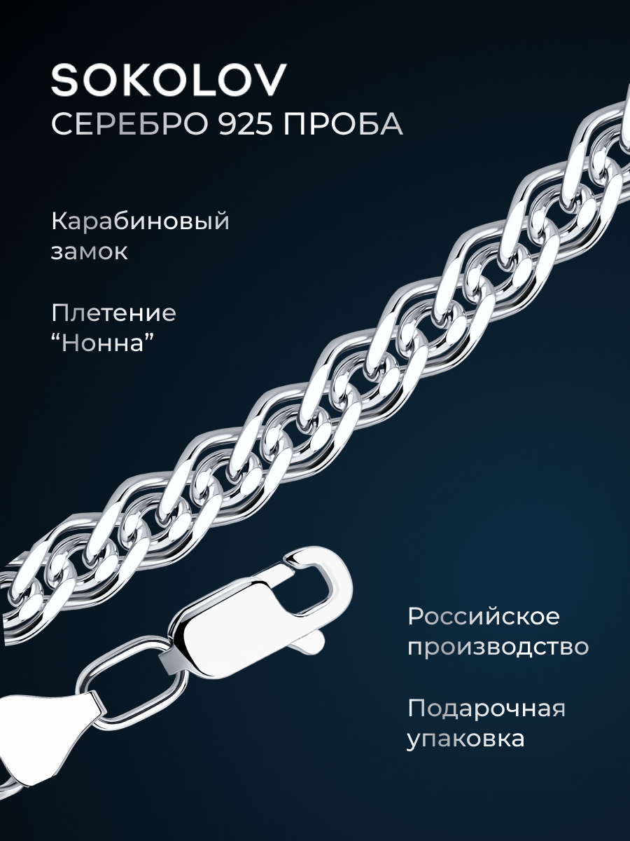 Цепь мужская SOKOLOV из серебра, плетение Нонна, 925 проба 968060802, размер 50 см