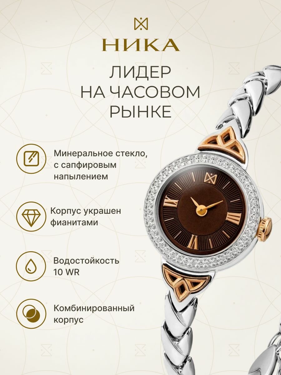 10 цен на Наручные часы НИКА, серебро, фианит, коричневый