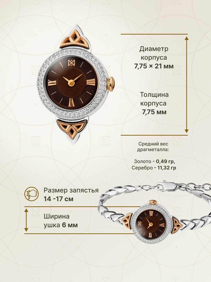 Наручные часы НИКА, серебро, фианит, коричневый информация: