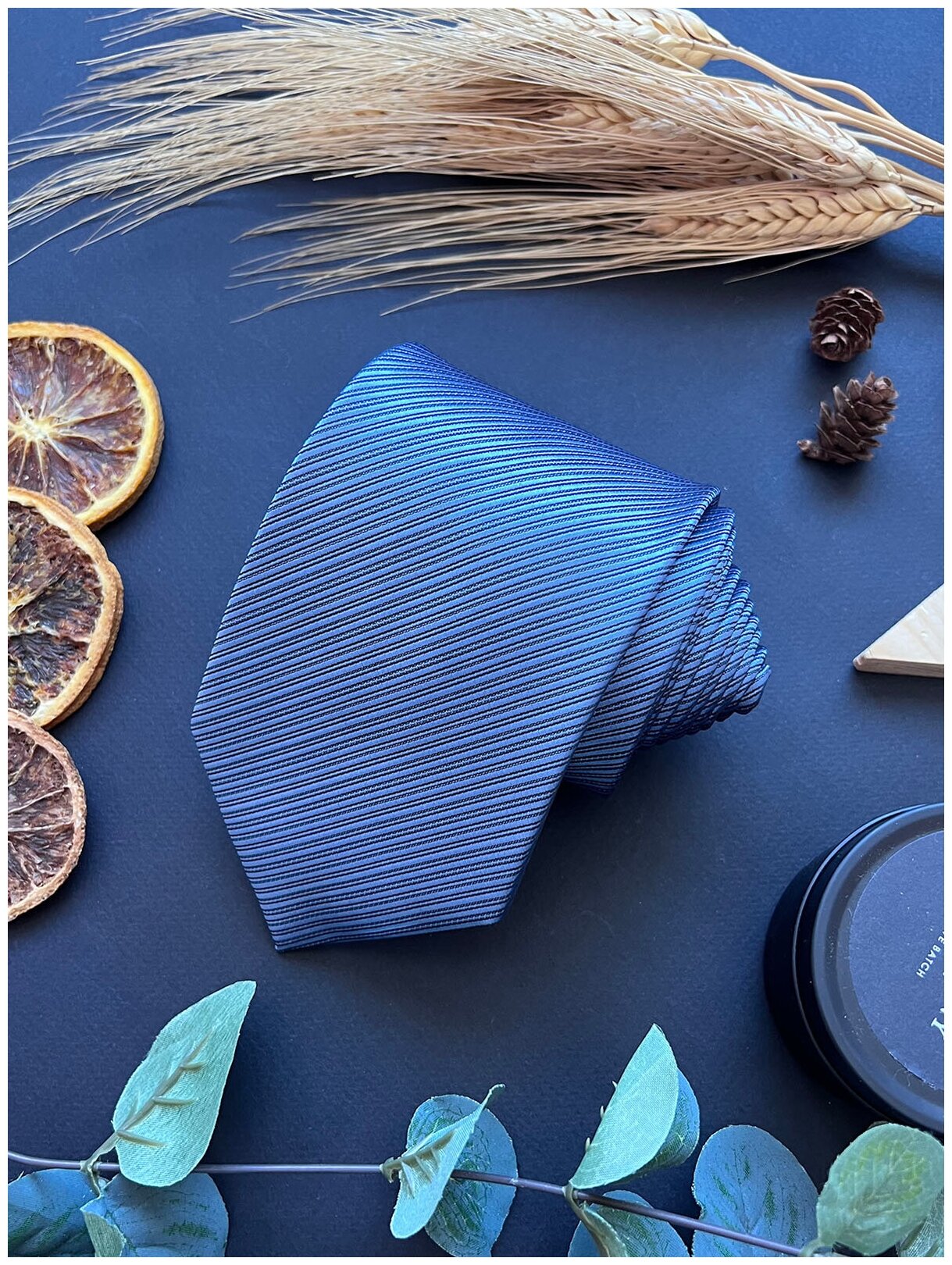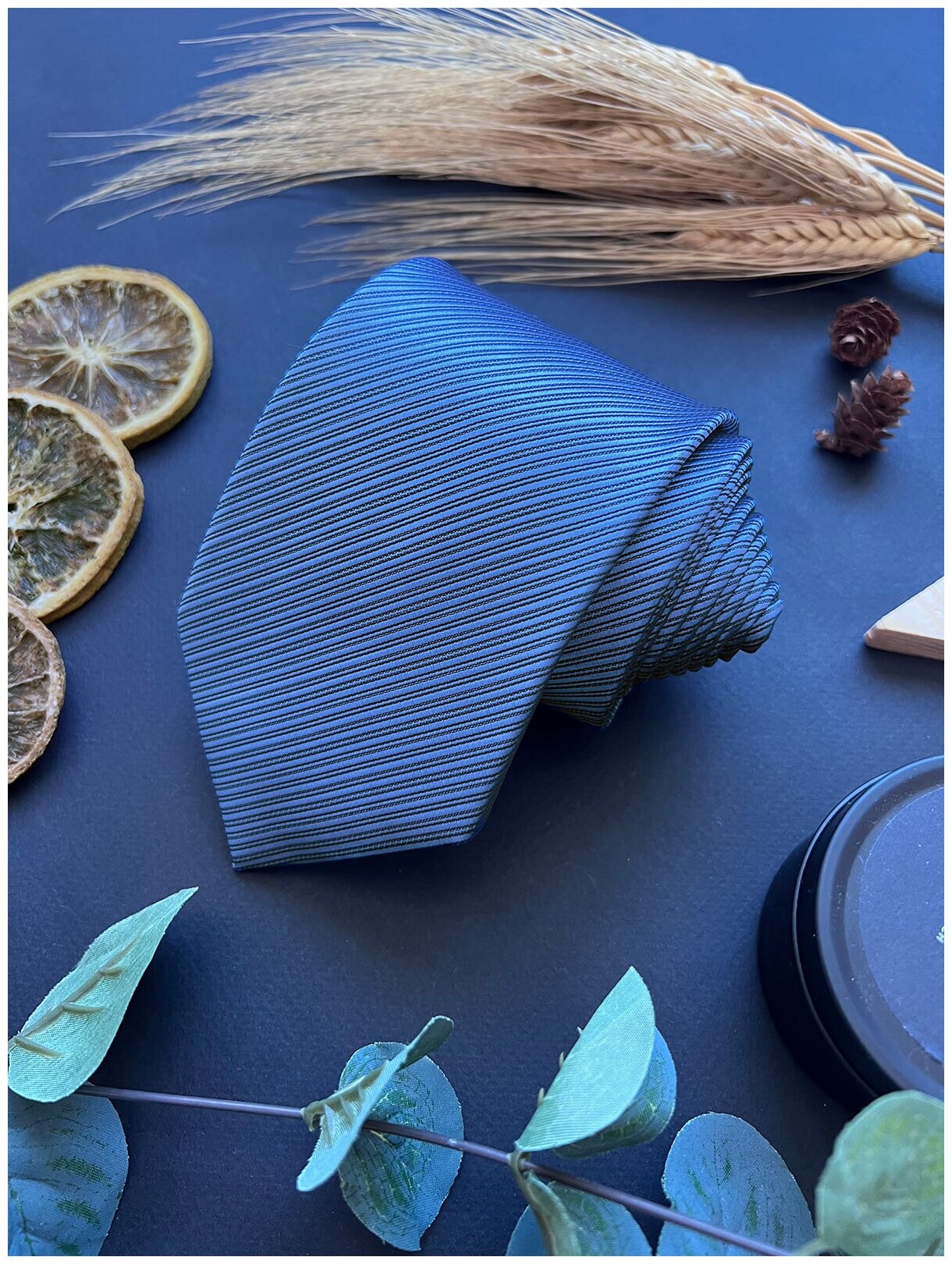 | Подробная комплектация | Широкий галстук мужской однотонный с полосатой текстурой голубой - 1 шт. |