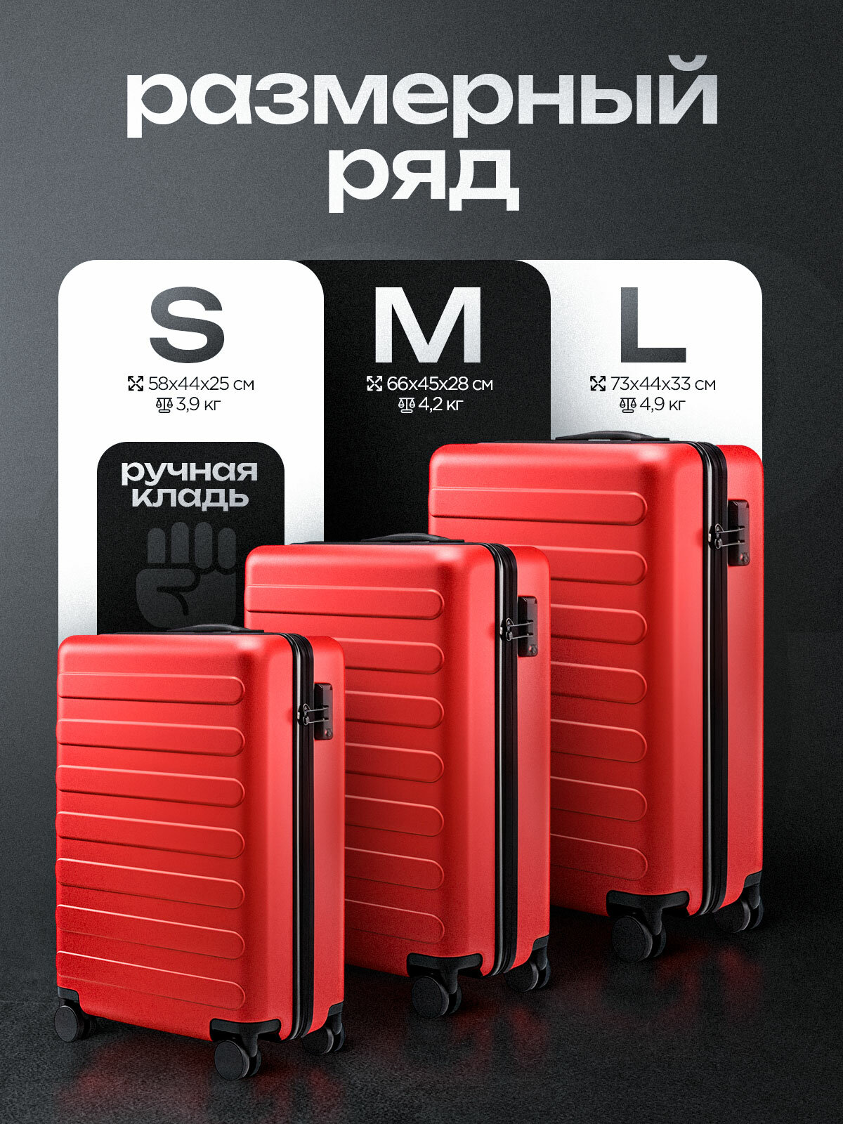 Чемодан Xiaomi, 66 л, размер M, красный информация: